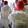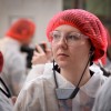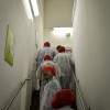 Trecând la vizitarea fabricii, am fost nevoiți să purtăm un echipament special pentru a nu contamina zona de producție. Chiar dacă produsele nu se află în contact direct cu niciun alt mediu, mijloacele de protecție au fost necesare. Arătam toți ca niște cosmauți simpatici.