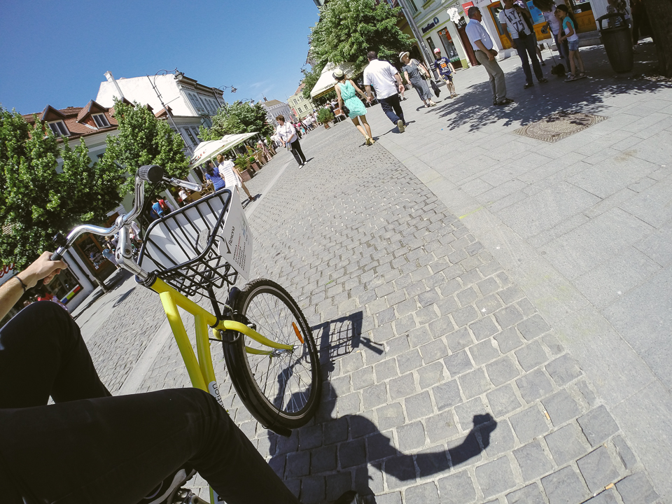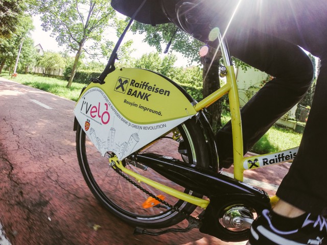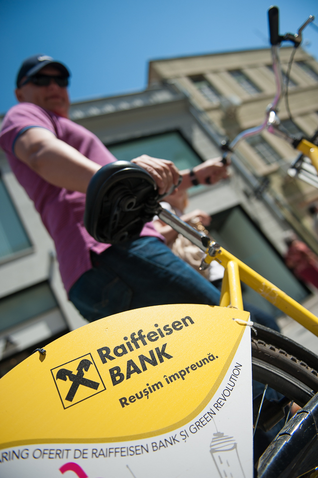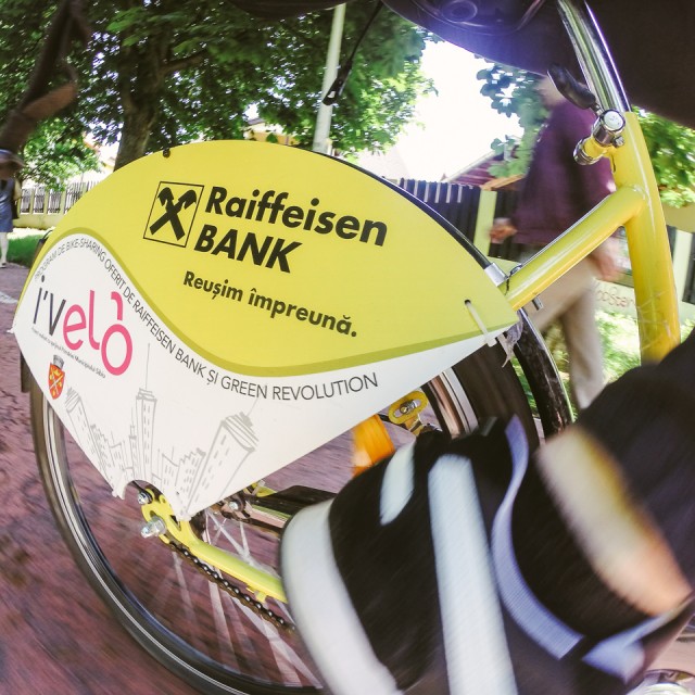 Bicicleta. Îmi era dor să mă plimb cu bicicleta. Așa că am profitat de câteva ore mai libere ale dimineții de duminică de la Sibiu tocmai ca să ies la o astfel de tură. Am avut noroc cu bicicletele Raiffeisen care se pot închiria din fața teatrului Radu Stanca din Sibiu. Sunt multe, bine îngrijite, comode și numai bune de plimbat. Prețul pentru închiriatul unei biciclete pe timp de zi este de 15 lei, iar procedura de preluare/primire e una tare simplă. E fun. Și și mai fun e dacă mergi cu mai mulți prieteni. O să-i vedeți în fotografiile de mai jos și pe Cristina și Cristi, surprinși imediat după ce ne-am terminat plimbarea prin centrul vechi al Sibiului. !! Atenție, urmează multe selfie-uri !!