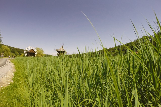 Muzeul Astra. Sub denumirea completă de Muzeul Civilizației Populare Tradiționale ASTRA din Dumbrava Sibiului. Adică sunt vreo 7 kilometri de pedalat din centrul Sibiului și până la muzeu. În maxim jumătate de oră ești acolo. Traseul e extrem de simplu. Cauți Hotelul Golden Tulip, iar de acolo ții banda de biciclete. Treci și printr-un parc foarte frumos, iar apoi ajungi la muzeu. Dacă vreți să vă plimbați prin muzeu cu bicicleta o puteți face doar între 9 și 11 dimineața și 8 și 10 seara, dacă țin bine minte. Oricum, e un muzeu care merită văzut. Tot aici este și casa care poate fi văzută pe bancnota de 10 lei. 🙂