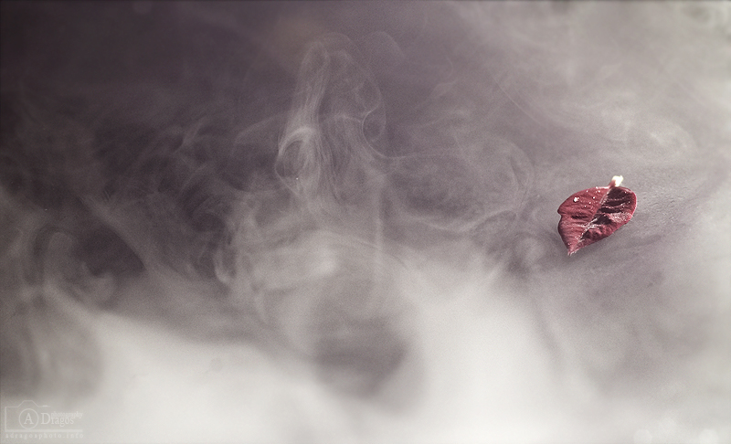 Am facut mult fum şi pe marginea unui vas am pus această frunză. Din lateral bătea bliţul şi gata poza. 🙂