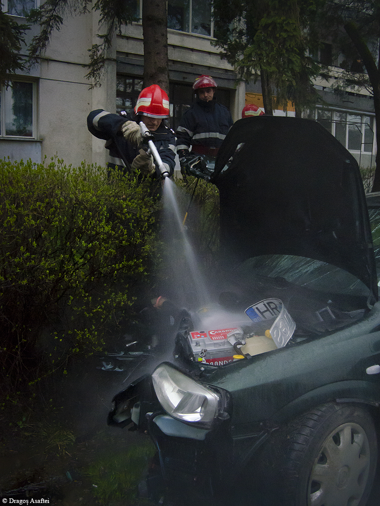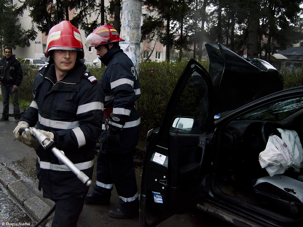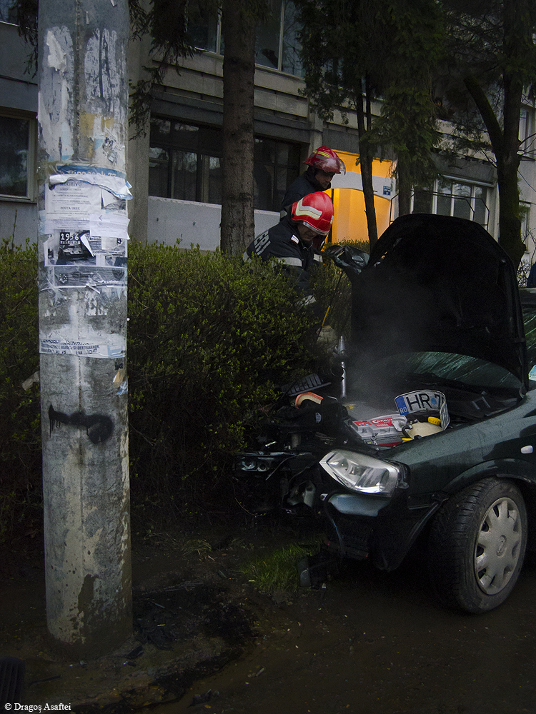 Ieri seara, la ora 20:30, o mașină a intrat frontal într-un stâlp de iluminat public, urmând ca imediat după impact să izbucnească un mic incendiu la nivelul motorului. În mașină se aflau trei persoane. Martorii spun să imediat după impact șoferul a ieșit din mașină și a căzut la nici jumătate de metru de aceasta. Respira greu și era destul de grav rănit.