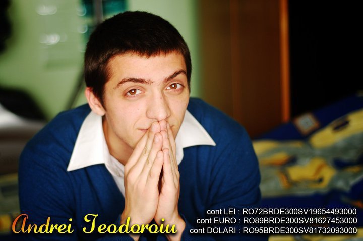Astfel, orice ajutor financiar este binevenit, orice ajutor e un pas înainte. Puteţi să îl ajutaţi pe Andrei prin donarea unei sume de bani în următoarele conturi (conturile sunt deschise la BRD Ploiesti, sucursala Bahluiului, pe numele Andrei Teodoroiu.):