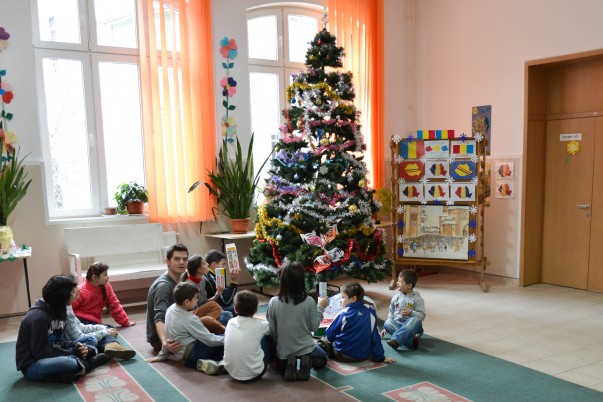 Dar am reușit, din fericire, să ajung la copiii de la Școala Specială Nr. 1 din București. Cadourile, care constau în produse Colgate și Palmolive, au ajuns la un număr de aproape 60 de copii din clasele I-IV ale acestei școli. Pentru că nu e tocmai legală fotografierea copilașilor din acea școală (și din mai toate aceste școli, mi se pare corect până la urmă), am reușit să îi surprind doar aici alături de mine și în fața bradului care și anul acesta le va pregăti câteva surprize frumoase.
