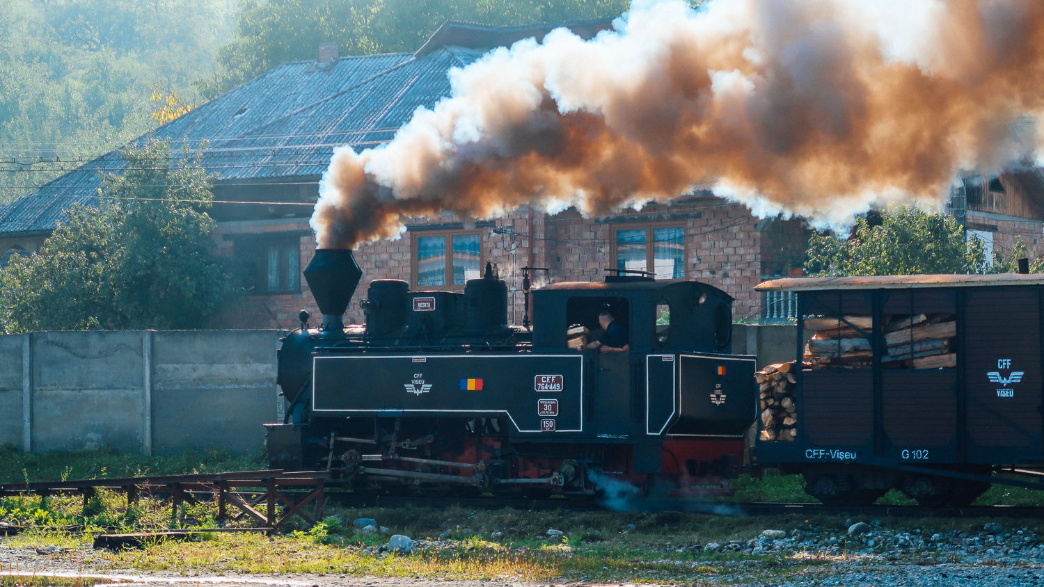 Detali în contre-jour și gamă dinamică mare – Mocănița la plecare, fotografiată în contralumină: imaginea arată bine, detaliile au fost suficient de bine înmagazinate pe senzor ca să poată fi apoi recuperate prin editare, chiar dacă e vorba de un JPEG și nu un RAW