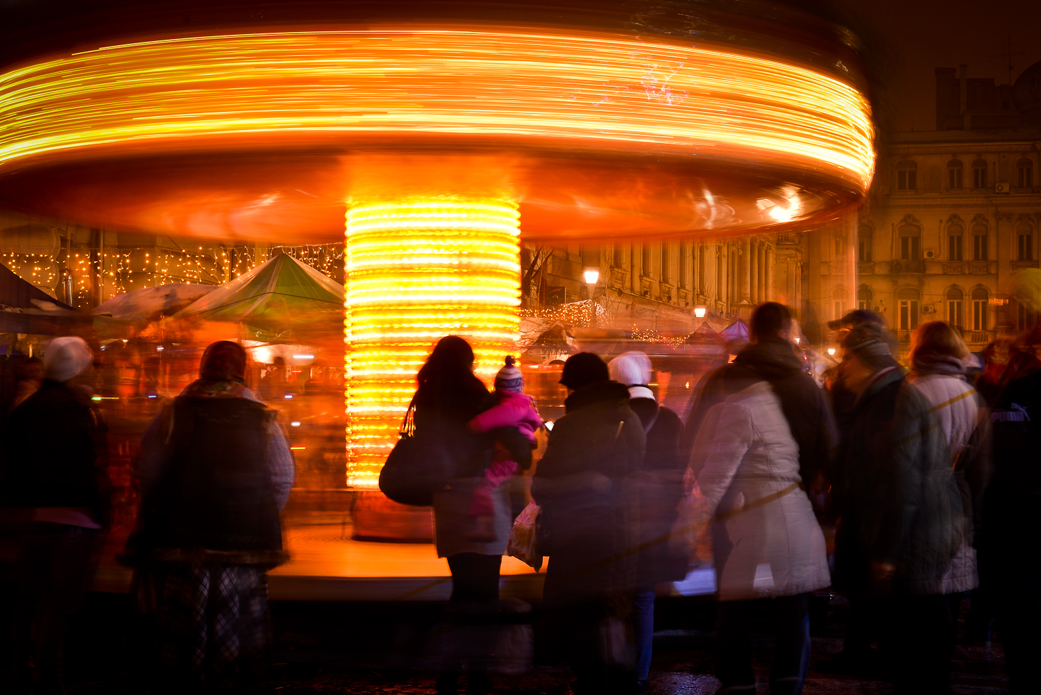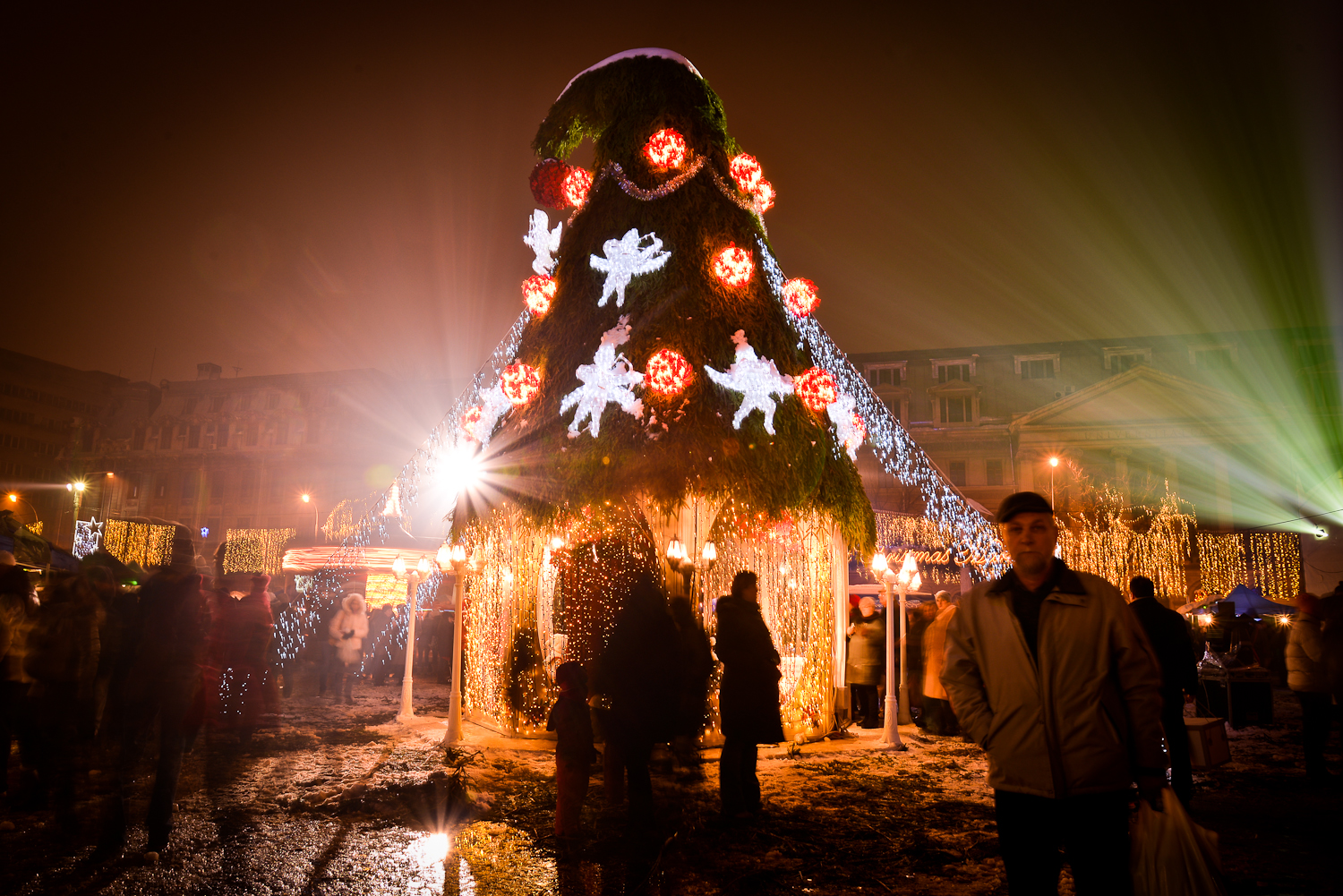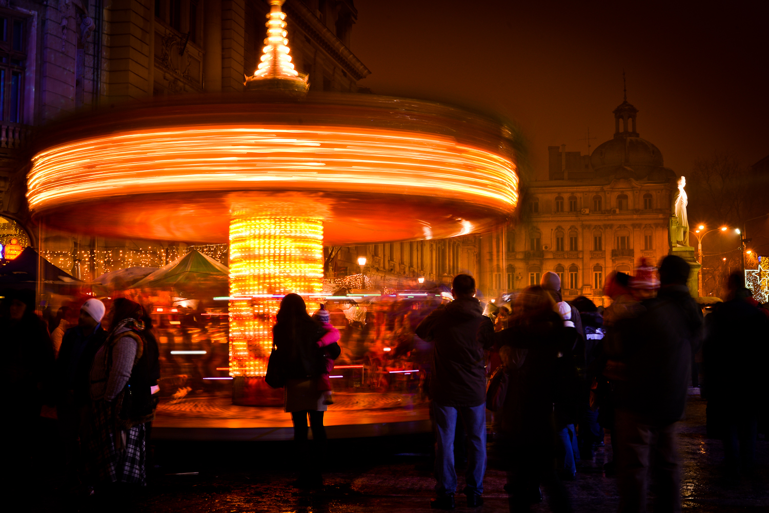 În seara aceasta am fotografiat târgul de Crăciun și zona Universității din București. Îmi doream de mult să fotografiez zona respectivă. Știu, știu că a fost fotografiată de foarte multe persoane. Dar am venit și eu cu perspectiva mea. Am observat că e foarte aglomerat târgul de Crăciun și parcă, nu știu, prea concentrat pe clișee și lucruri clasice regăsite peste tot. Înafară de câteva standuri care sunt, într-un fel sau altul, autentice, nu prea ai ce să vezi.