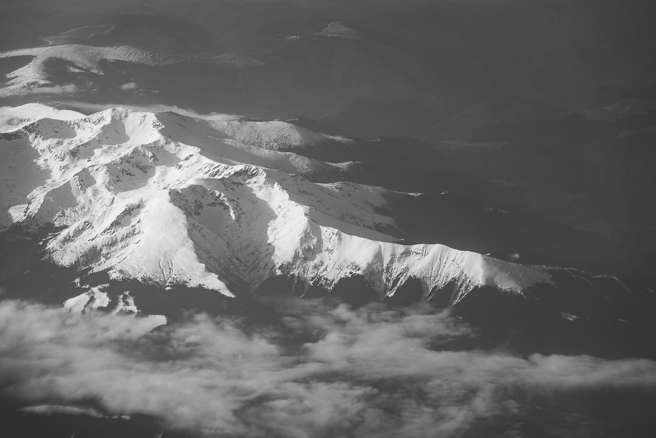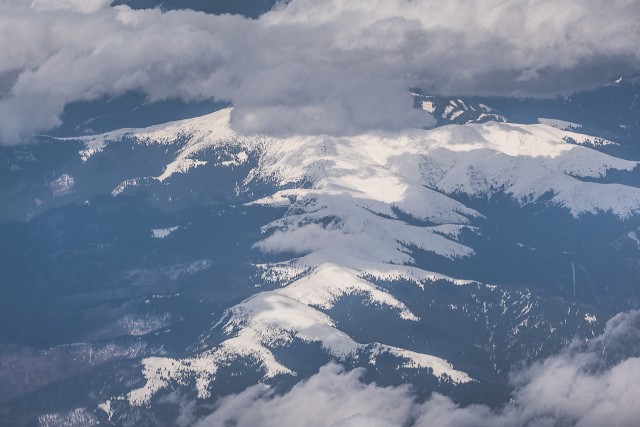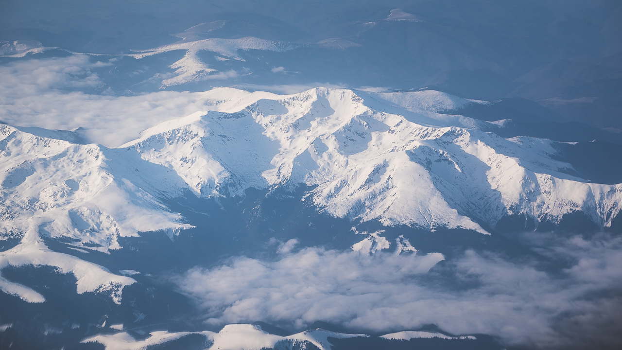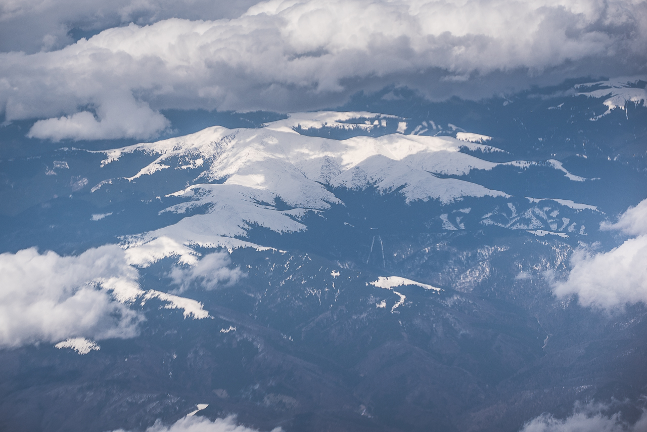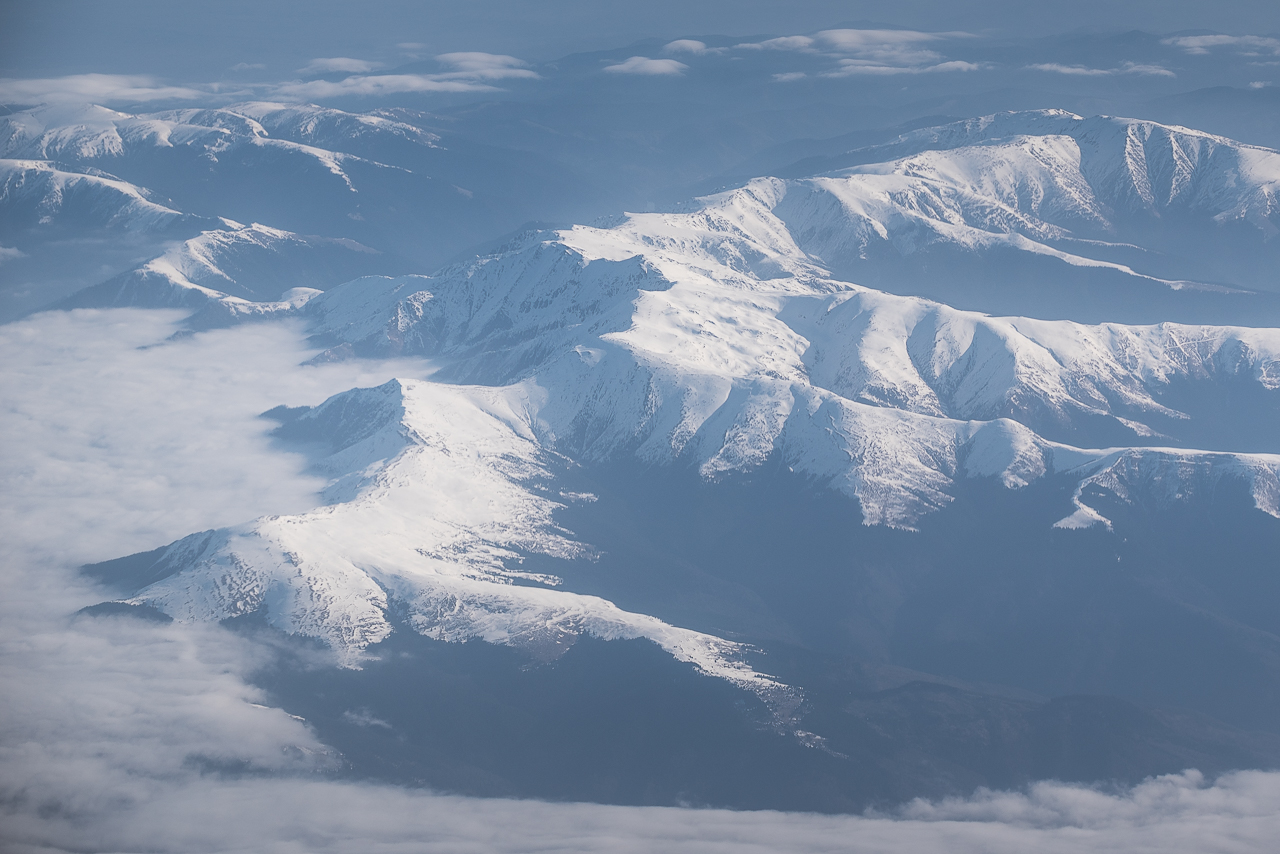 Carpații Meridionali fotografiați din avion la început de primăvară