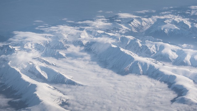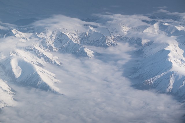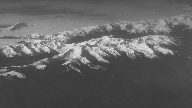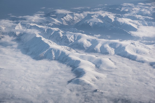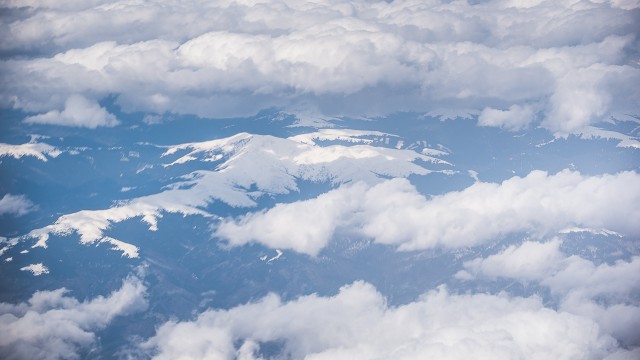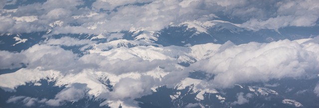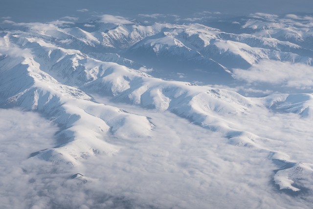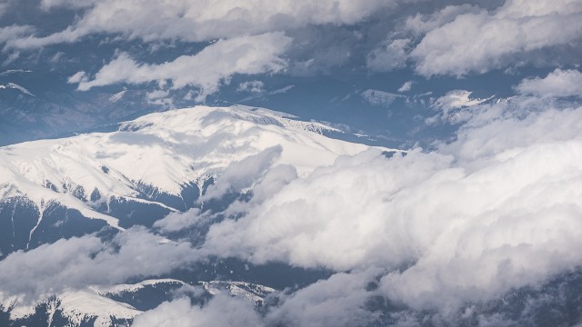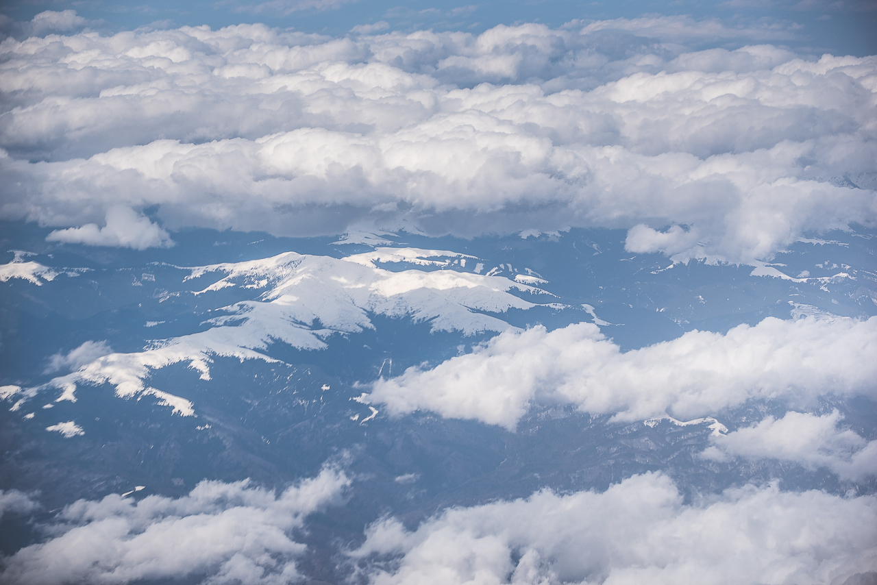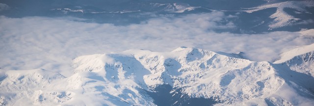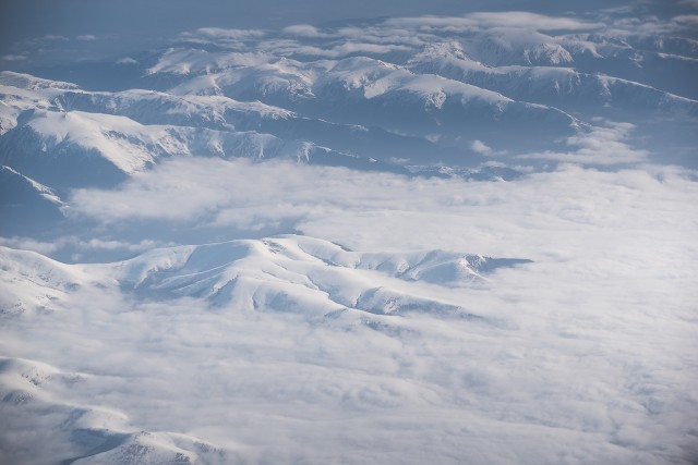Carpații Meridionali fotografiați din avion la început de primăvară