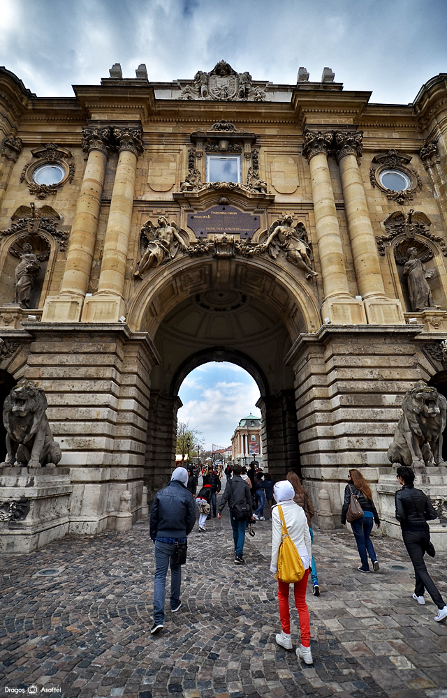 În timp ce vizitam Budapesta ne planificasem să vedem și Castelul Buda, care se află pe malul nordic al Dunării și, bineînțeles, în partea cu același nume a orașului. În momentul în care am intrat nu m-așteptam să fie atât de mare. Imediat ce pășești în castel intri, de fapt, într-un alt oraș. Cam așa arăta Castelul din direcția în care intri. Cu siguranță nu te aștepți să găsești o zonă foarte mare în spatele zidurilor.