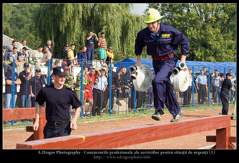 Astăzi, 13.08.2009, a avut loc cea de a doua ediţie a Concursurilor profesionale ale serviciilor voluntare şi private pentru situaţii de urgenţă – Etapa naţională – Întâlnire internaţională a pompierilor, care anul acesta s-a ţinut în Odorheiu-Secuiesc. Prima zi a evenimentului a debutat cu festivitatea de deschidere însoţită de discursuri oficiale ale autorităţilor şi organizatorilor, printre care şi primarul oraşului gazdă, Bunta Levente, vicepreşedintele consiliului judeţean Ladany Laszla, preşedintele consiliului judeţean Harghita – Borboly Csaba, inspectorul şef I.S.U. „Oltul” Harghita – Gheorghe Pop etc. Defilarea tuturor unităţilor a fost momentul deschiderii întregului concurs realizând şi o scurtă prezentare a echipelor concurente. Proba debutantă a concursului a fost „pista de îndemânare şi viteză”, probă în care concurenţii erau supuşi la saltul peste un panou de 2m înălţime, mersul 4 metri pe bârnă împreună cu 2 furtune ce la sfârşitul acesteia erau aruncate, racordarea furtunelor şi linia de finish. Câştigătorii acestei probe au fost cei de la „Serviciul voluntar pentru situaţii de urgentă – Comuna Giroc”, timpul obţinut fiind cel de 20secunde şi 71 sutimi. A doua probă a fost ştafeta 4 x 100m, probă ce supunea saltul peste panoul de 2metri, mersul culcat prin gărduleţe, sprint, salturi peste panouri de 1 metru, respectiv 1metru jumătate, şi stingerea unui „incendiu” provocat într-un panou.
