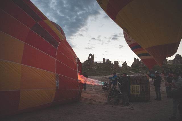 Ei, cam uiți de toată treaba când trăiești experiența completă a zborului. La 5 dimineața vine și te ia de la hotel un microbuz care te duce spre Goreme, unul din locurile din care decolează 100 de baloane la răsărit și încă 50 la o oră după răsărit. Aproape în fiecare dimineață.