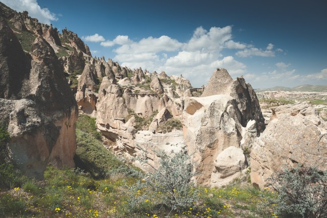 Relieful din zona Cappadociei i-a făcut pe oameni să își construiască adăposturi în locuri în care nu ți-ai putea imagina. În aproape fiecare stâncă vezi o încăpere. Multe dintre ele încă se mai folosesc, ori pentru adăpostul oamenilor, ori pentru cel al alimentelor. În multe locuri o încăpere dintr-o stâncă poate juca rol de cămară pentru mai multe familii care stau în jurul ei.