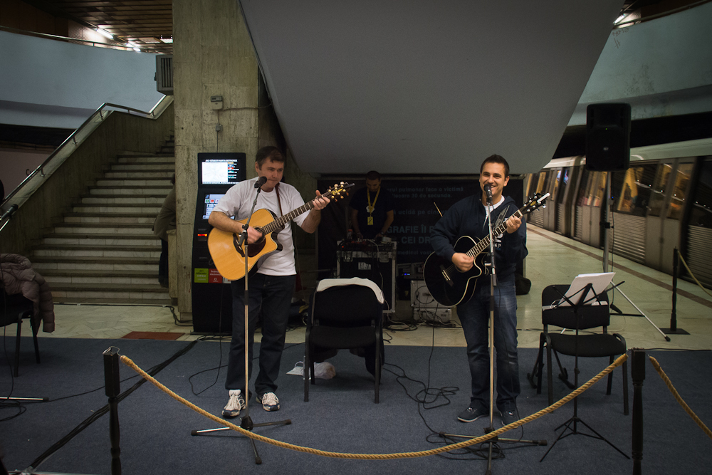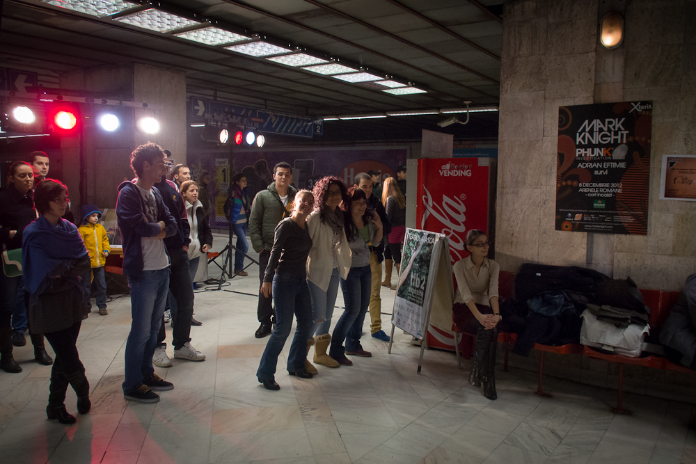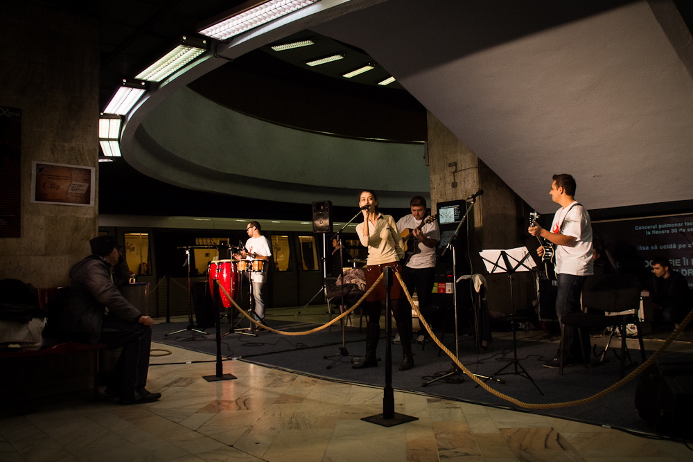 Revenind, Marius Matache, Vlad Dulea, Andra Zaharia, Anca Duma, Sandra Clipea și Radu Tudoroiu au reușit să facă spectacol la metrou. Eu nu am putut ajunge și sâmbătă, când au cântat la Unirii, dar din ce am văzut în fotografii au fost tare mulți oameni care s-au oprit să îi asculte. Și nu e ceva ușor să oprești un om din drum și să-l ții acolo, lângă tine, să te asculte. Am cel puțin două-trei exemple de campanii realizate la metrou cu scopul de a atrage atenția oamenilor, dar nu aveau un public mai mare de 10 persoane. Pentru că nu prindeau.