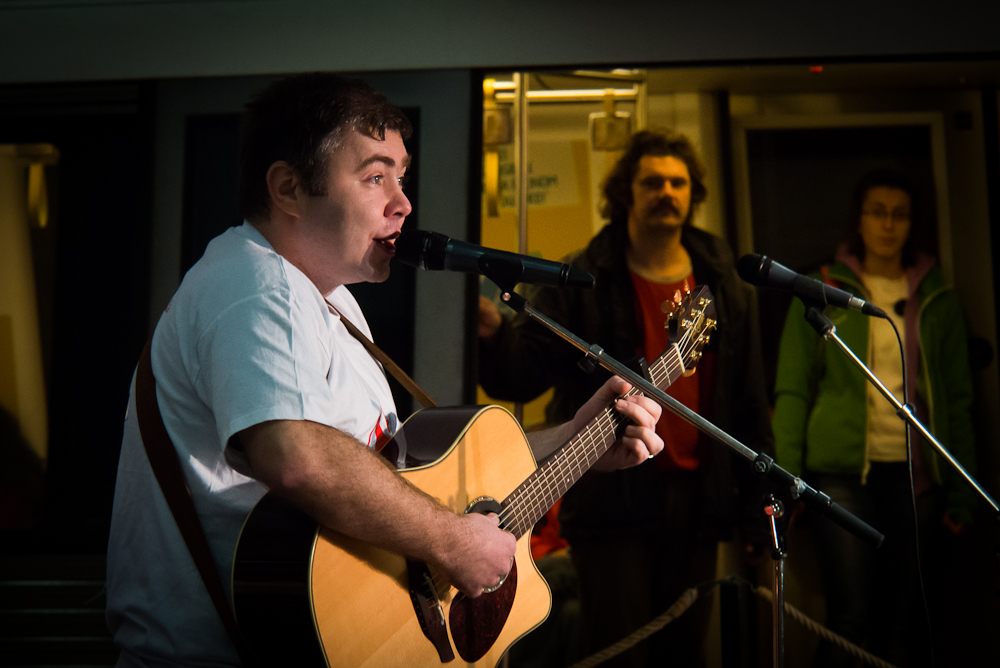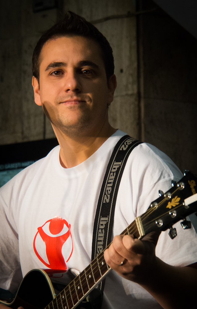 Am fotografiat cu el ieri la metrou la Universitate. Știți că lumina nu e chiar cea mai ok, mai ales dacă vrei să surprinzi clipe și expresii scurte de pe fața celor care cântă, spre exemplu. Eu am fotografiat aici cu obiectivul 14-150mm f/4-5.6, obiectiv care, în formatul clasic, devine 28-300mm, adică un all-around mai mult decât suficient pentru oricare dintre situațiile întâlnite. Nu e un obiectiv luminos, dar totuși datorită calității la sensibilitate ISO ridicată și a sistemului de stabilizare în cinci axe, am reușit să obțin cadre mulțumitoare, cred eu.