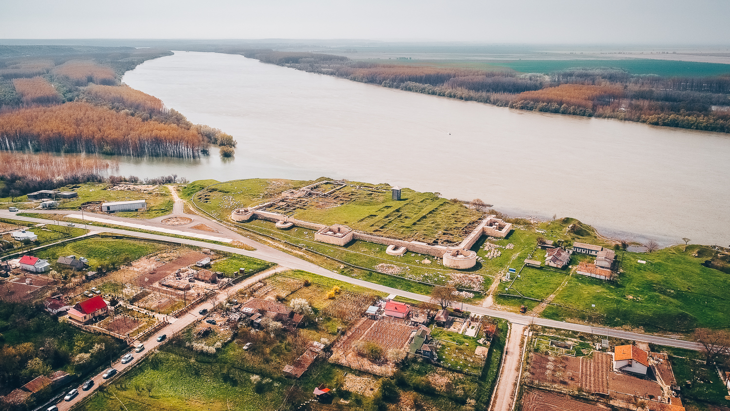 Cetatea Dinogeția a fost următoarea la care am ajuns, chiar în timp ce soarele se mai potolise și adia cu o lumină superbă. De altfel, am și profitat din plin de această lumină aproape de Măcin, înainte să ajungem la Arrubium, când am fotografiat drumul spectaculos din apropierea Munților Măcinului. Cu soarele ăsta domol am avut locul perfect de joacă pentru o altă serie de imagini făcut cu drona. Dinogeția e dintre cetățile ale cărei forme încă se mai văd (până la un anumit punct, desigur), așa că o să îți facă plăcere să te plimbi printre ruinile cetății getice. Cetatea se află aproape de locul în care Siretul și Prutul se varsă în Dunăre și era folosită ca punct de staționare a flotei romane pe fluviu – Classis Flavia Moesica.