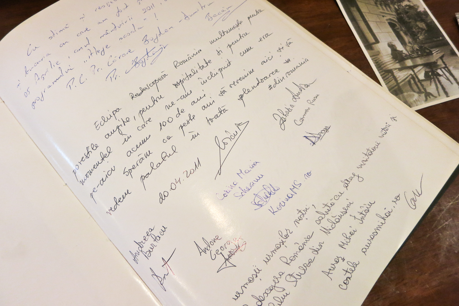În urmă cu doi ani, în cadrul proiectului Redescoperă România, am vizitat pentru prima oară Castelul Sturdza din Miclăușeni. Înainte de a vă povesti mai multe despre vizita de acum, vreau să vă arăt o fotografie care mă încântă. Am găsit în cartea de oaspeți semnăturile noastre de la vizita din 2011 din cadrul proiectului. 🙂