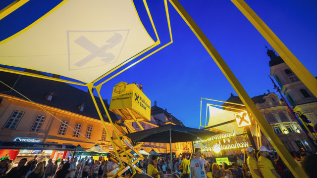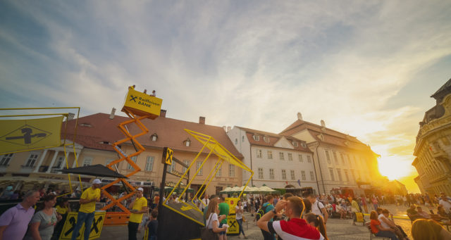 La ediția din acest an Raiffeisen Bank a venit în completarea acestor bucurii cu o idee care a adus multe zâmbete pe chipurile oamenilor. „Ce poate fi mai frumoasă decât o amintire cu întreg festivalul?”, s-au întrebat, probabil, oamenii din echipa băncii, pregătind prezența la festival. Așa că au adus o nacelă în Piața Mare, care i-a ridicat la peste 5 metri înălțime pe oamenii veniți la festival. Unul câte unul sau chiar în cupluri, zeci de oameni au văzut Piața Mare și spectacolele din ea de la înălțime și au avut ocazia să își facă niște super amintiri cu ele.