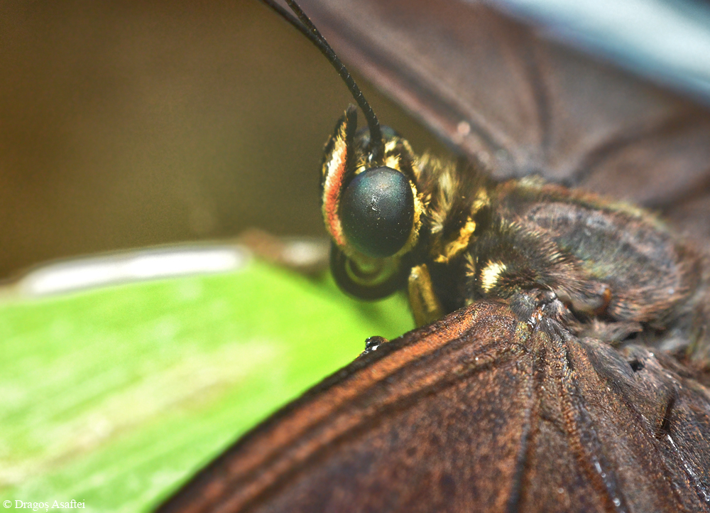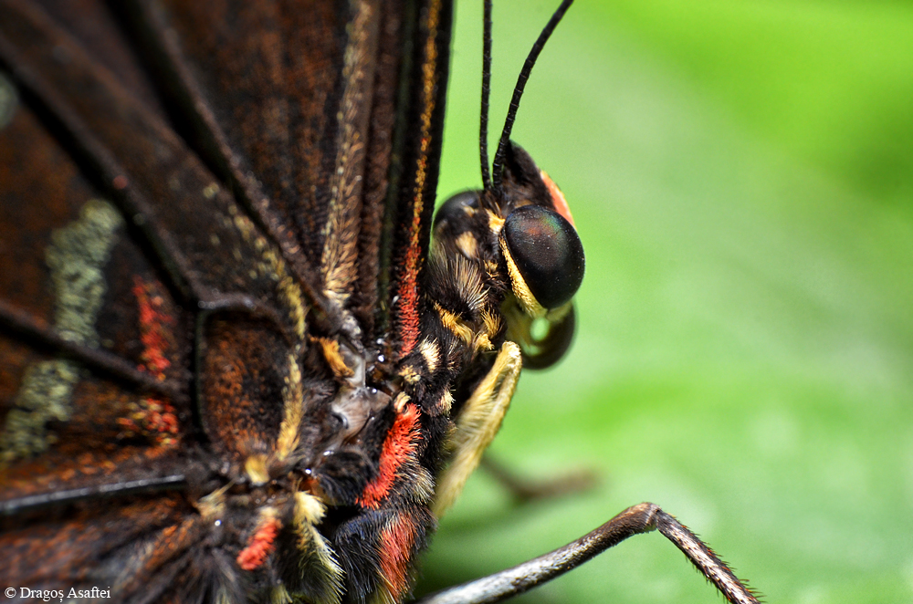 Ieri am avut ocazia de a fotografia un fluture aparte, reușind să îmbin astfel genul meu preferat, macrofotografia, cu frumusețea deosebită a unei insecte atât de firave. Acest set de fotografii este probabil cel mai reușit al meu realizat cu un fluture, surprinzând în această serie detalii importante precum structura aripilor insectei.