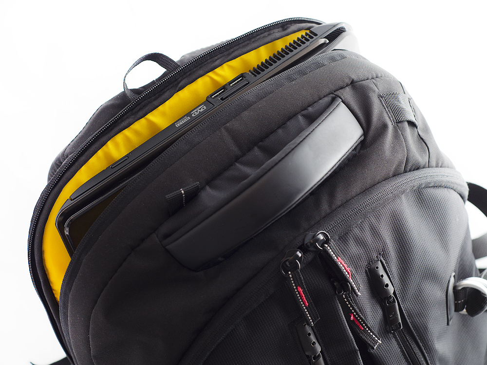 - deși este destinat pentru purtarea unui laptop de 15 inchi, și cel de 17 a încăput perfect