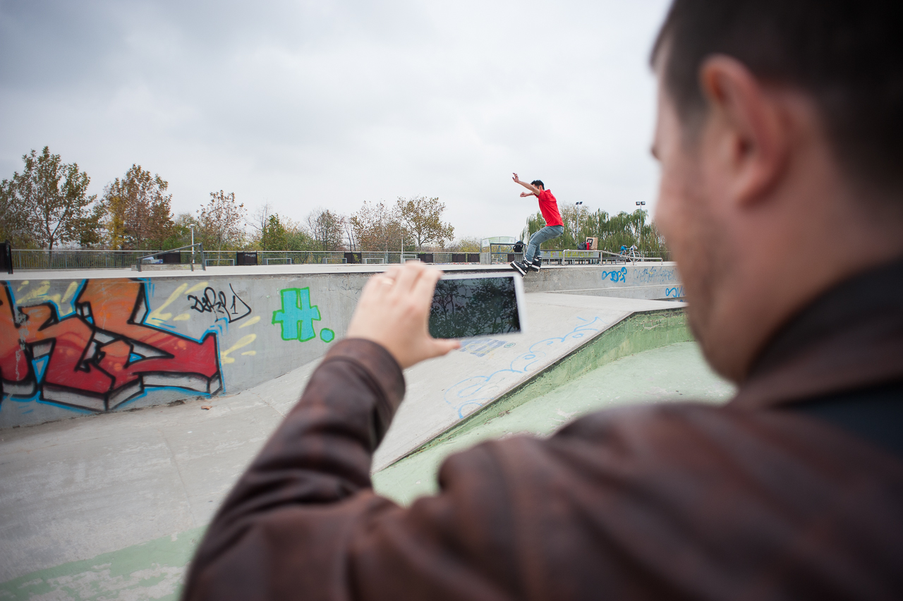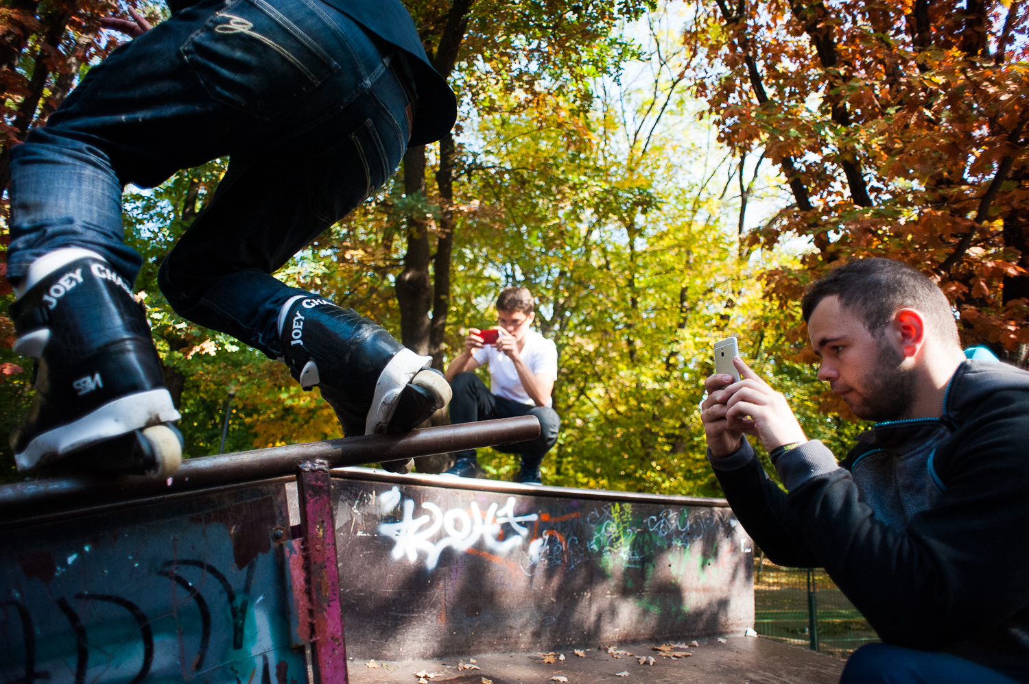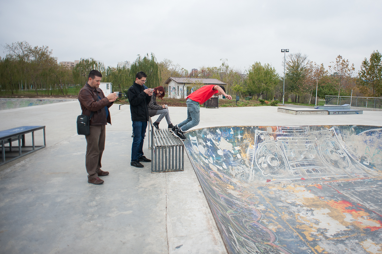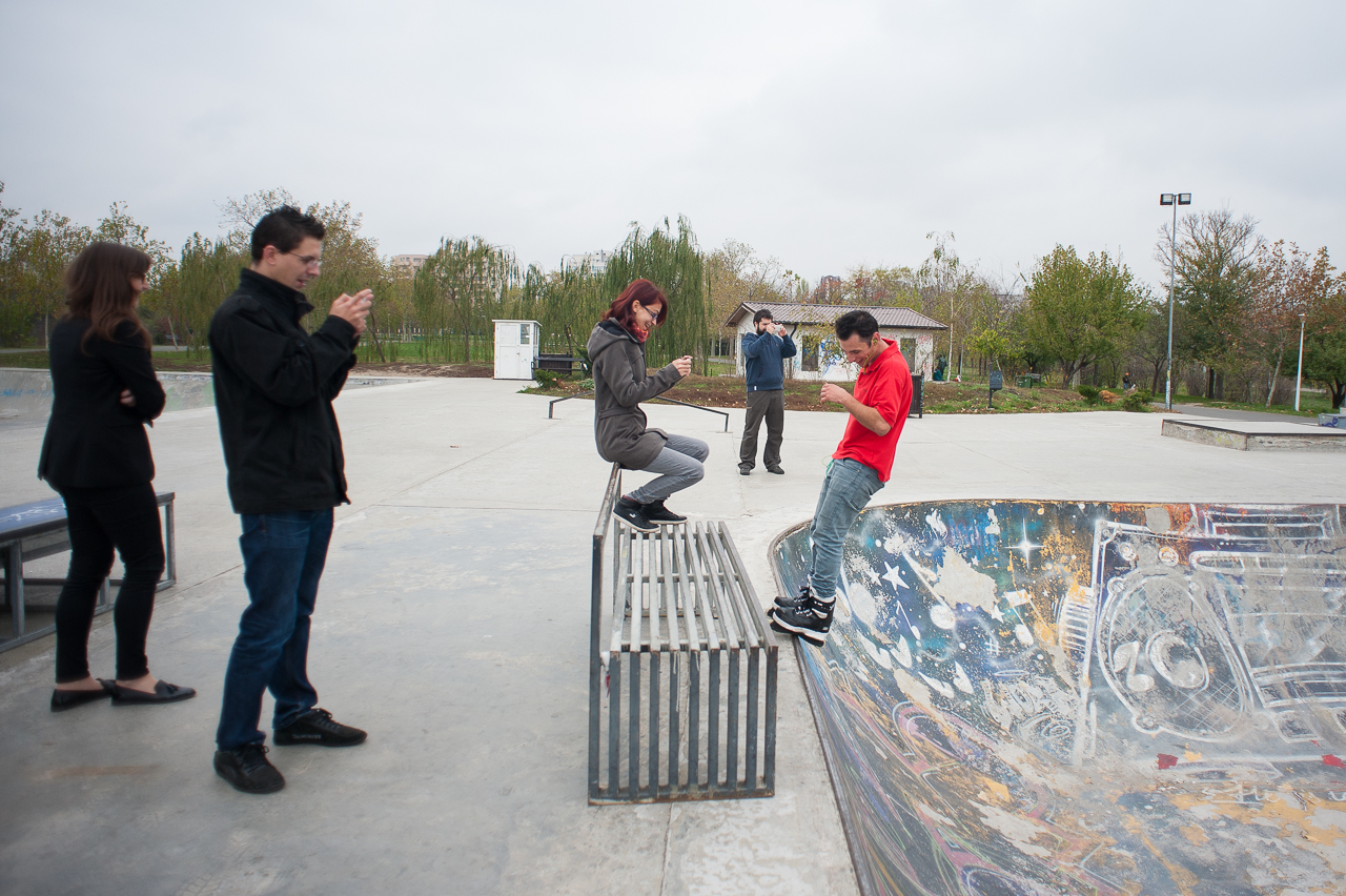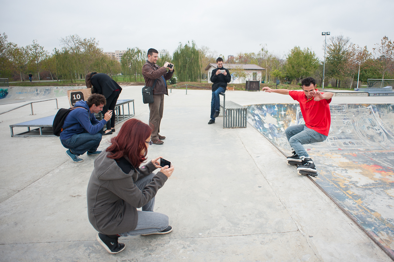Ne-am întâlnit de două ori alături de bloggeri pasionați de tehnologie și noutăți și l-am fotografiat pe Mihai Militaru, un roller skater pasionat de ce face de mai bine de 10 ani. Unde mai pui că își și filmează trick-urile și asta l-a ajutat să ne înțeleagă mai bine pe noi și să știe exact ce-am dori să surprindem, motiv pentru care ne-a oferit niște cadre tare bune.