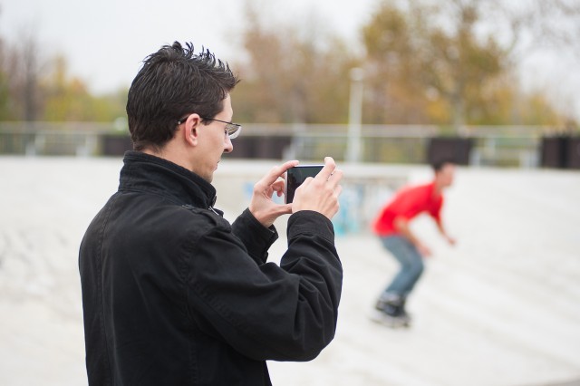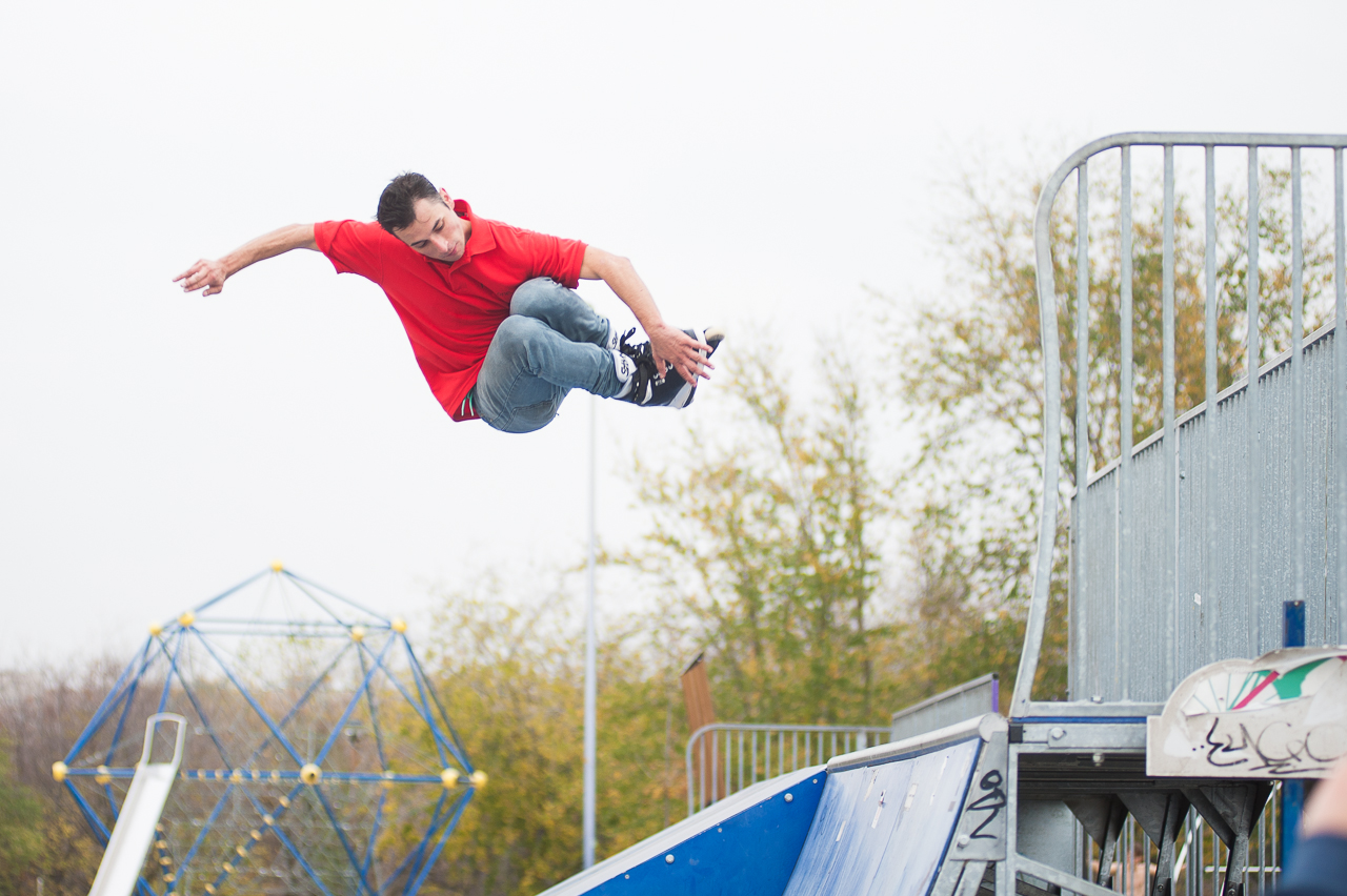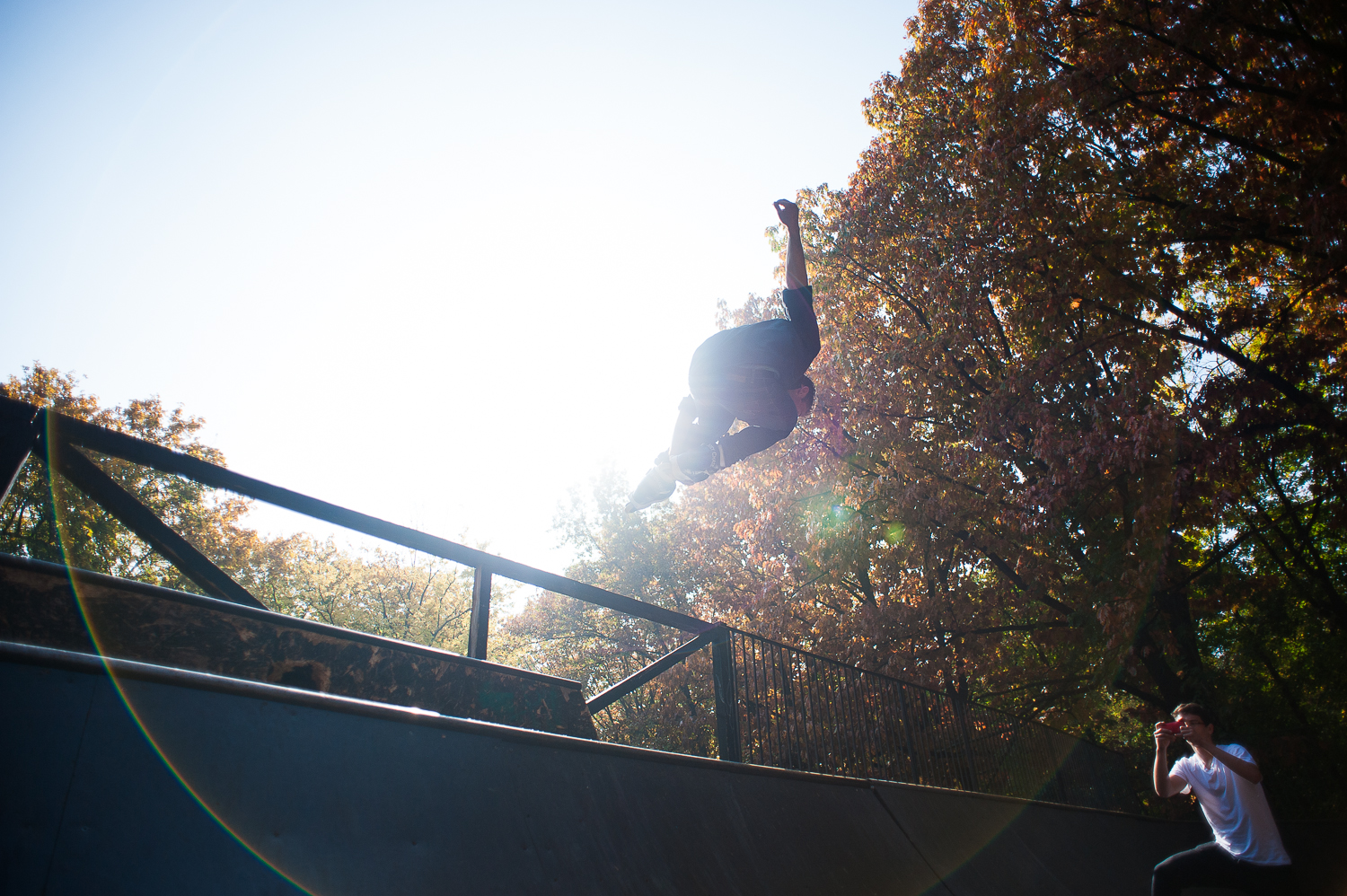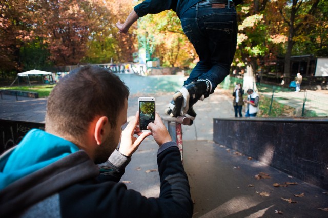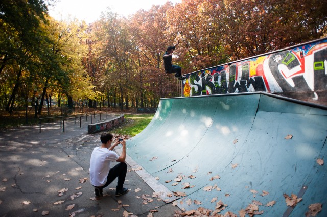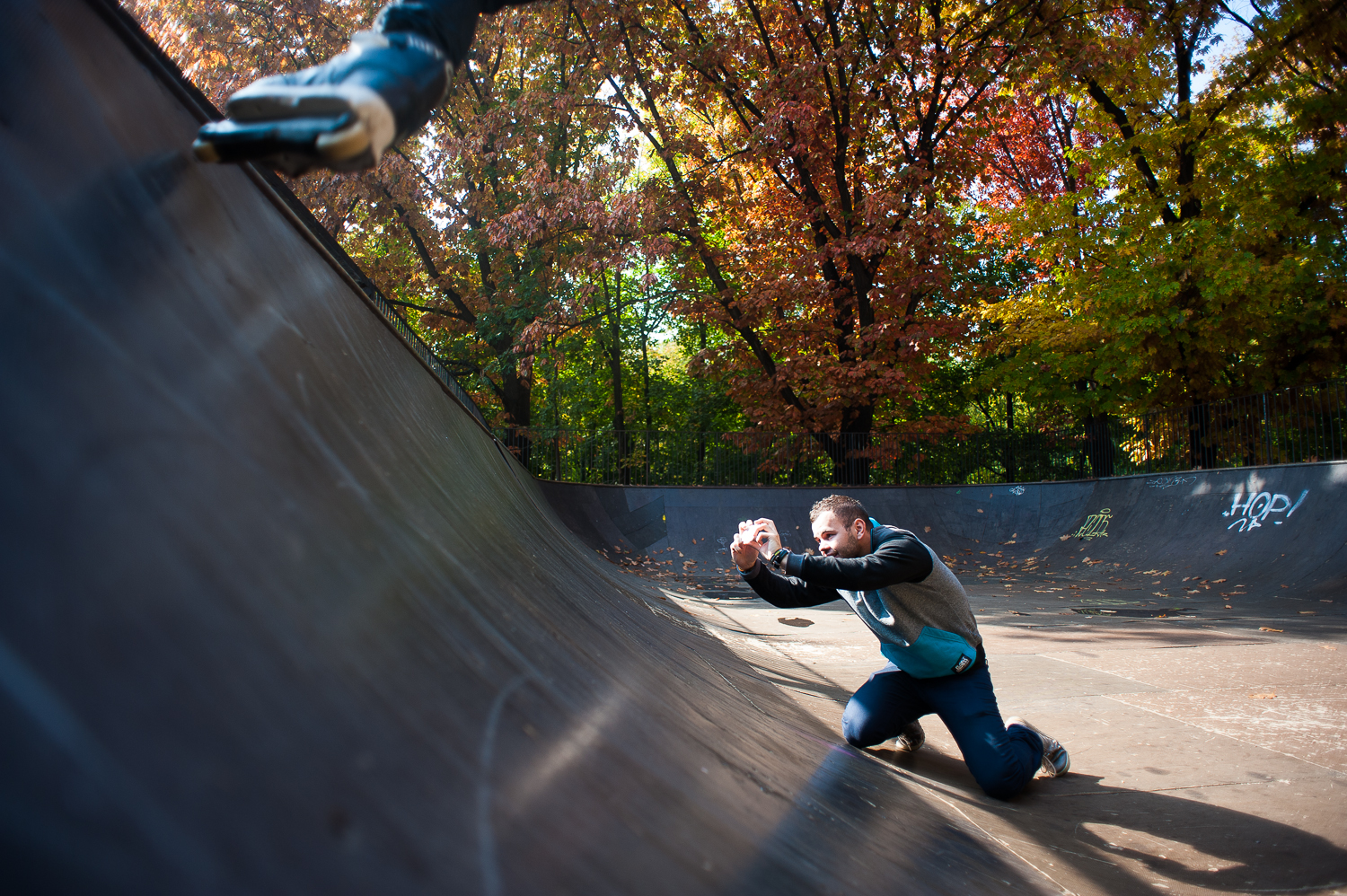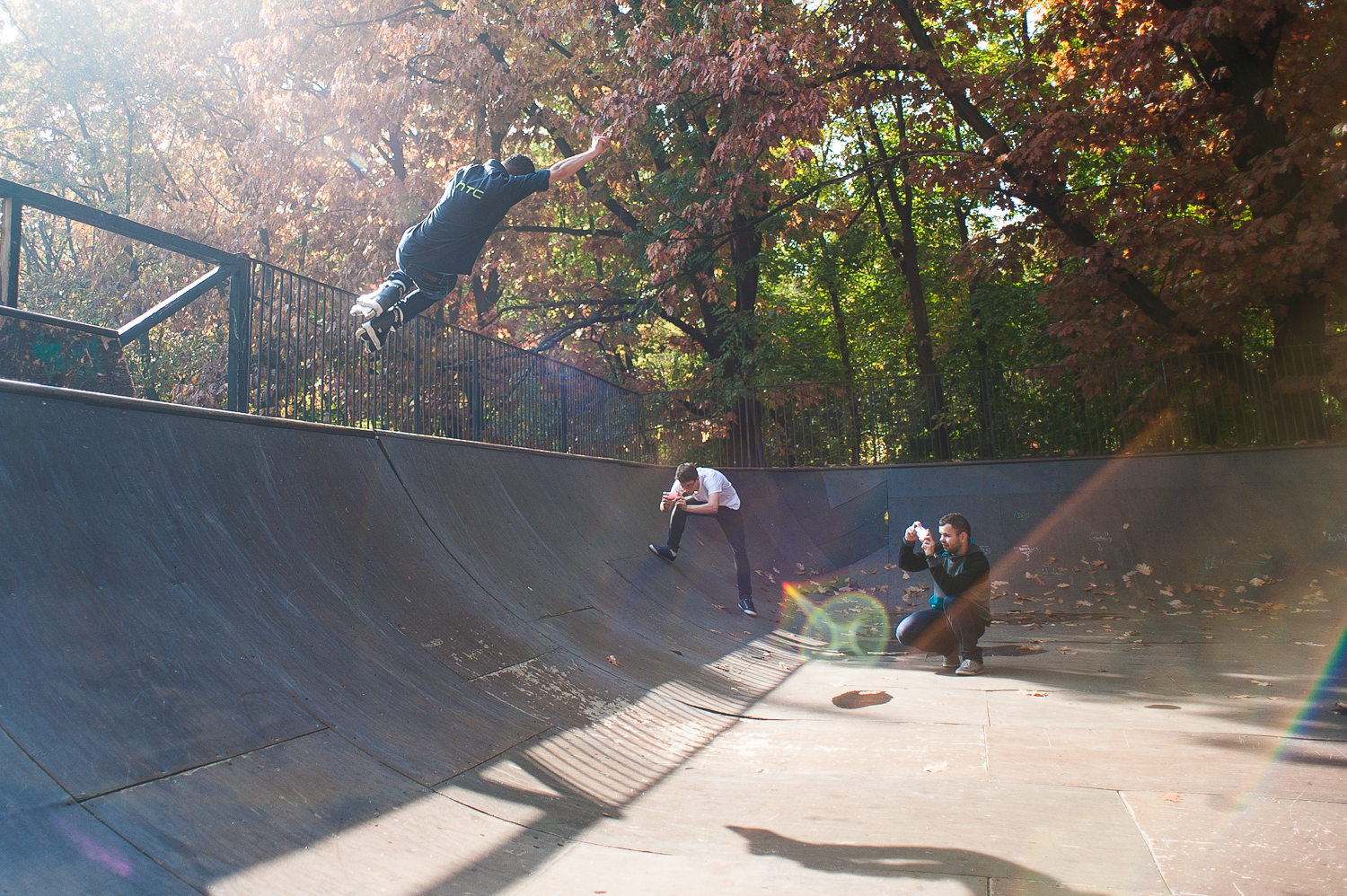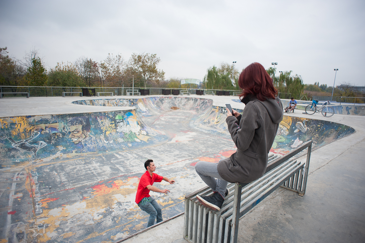 Ne-am întâlnit de două ori alături de bloggeri pasionați de tehnologie și noutăți și l-am fotografiat pe Mihai Militaru, un roller skater pasionat de ce face de mai bine de 10 ani. Unde mai pui că își și filmează trick-urile și asta l-a ajutat să ne înțeleagă mai bine pe noi și să știe exact ce-am dori să surprindem, motiv pentru care ne-a oferit niște cadre tare bune.