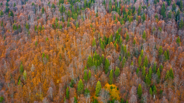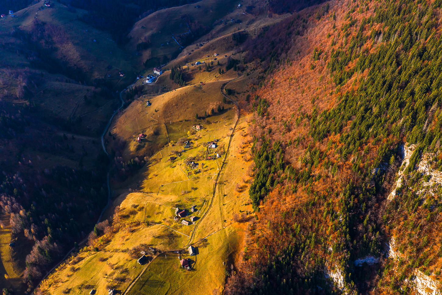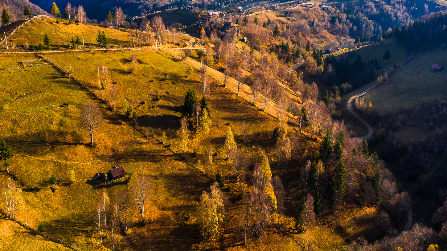 Fotografii aeriene: Final de toamnă pe culoarul Rucăr-Bran