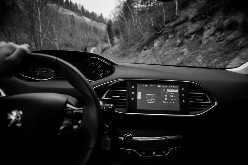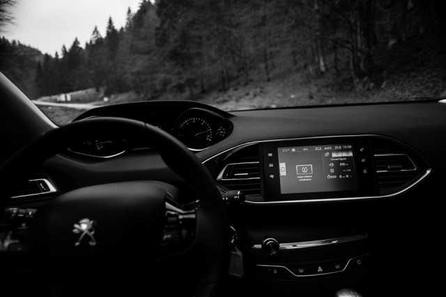 Și acum să trecem la interior unde avem parte de unul dintre cele mai simple, elegante și frumoase borduri. Îmi amintesc că eram pe drum și ascultam Europa FM când am auzit în boxe: „Ești la volanului noului Peugeot 308, mașina anului în Europa…”, iar de aici mesajul continua pe ideea că s-a renunțat la toate elementele care are putea distrage atenția de la condus.