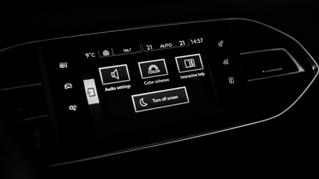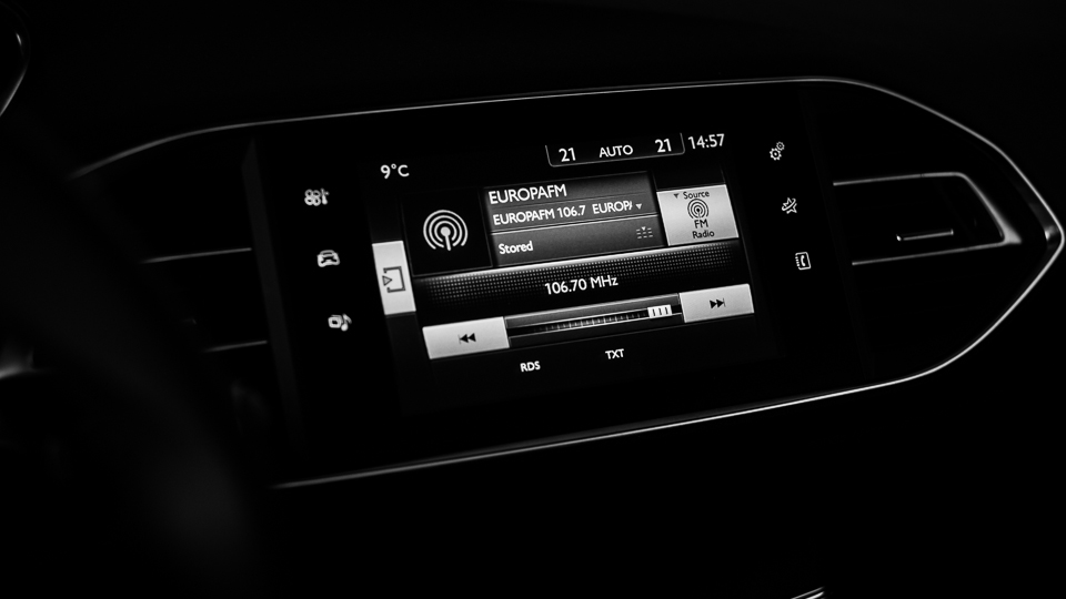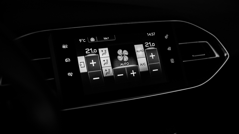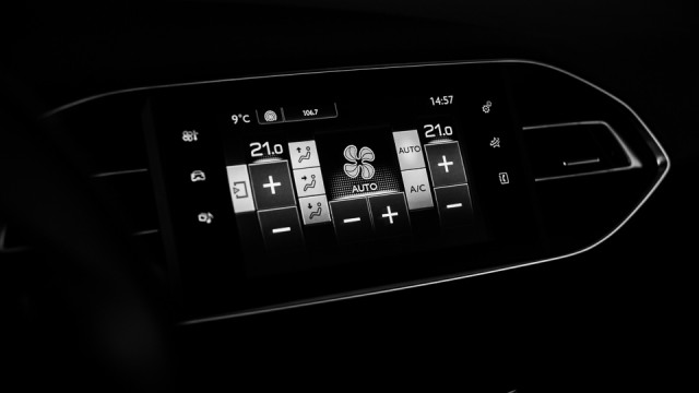 Bordul este mult mai simplificat. Display-ul i-Cockpit înglobează toate funcțiile care se regăseau înainte în butoane: clima, sistemul audio, setările mașinii, computerul de bord etc. Toate sunt în acest display LCD care se mișcă impecabil, arată bine și care e ușor de urmărit. Credeam c-o să-mi fie greu să mă obișnuiesc, dar mi-am dat seama apoi că e foarte util, iar în combinație cu comenzile de pe volan și indicatoarele de bord care sunt coborâte în așa fel încât să le vezi mult mai bine, experiența condusului devine mult mai plăcută.