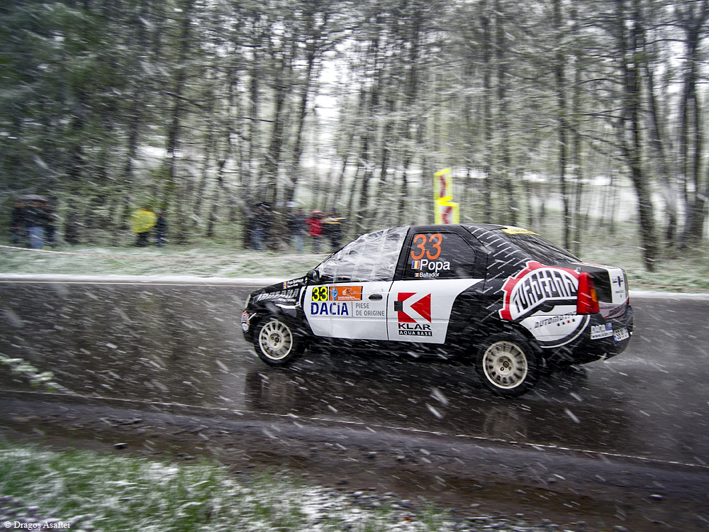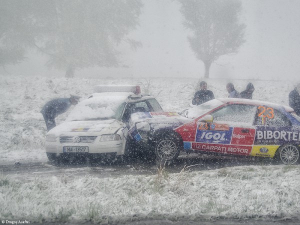 Un alt eveniment extrem la propriu a fost Raliul Mureșului, desfășurat în luna mai a acestui an. Deși era aproape de începutul verii și toți piloții erau pregătiți de o vreme căldurasă, așa cum fusese încă de la începutul etapei, am avut parte cu toții de o mare surpriză. A început să ningă, și a nins tare!!! Atât de tare încât în 15 minute s-au produs 4 accidente, din care unul cu mașina poliției parcată în afara drumului. Neavând cauciucuri corespunzătoare, foarte puțini dintre concurenți au terminat etapa. A, și eu eram la eveniment îmbrăcat în haine de vară, tricou și pantaloni foarte subțiri.