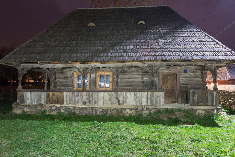 Pe timp de noapte le-am iluminat cu lanterna telefonului prin tehnica de light painting. Am încercat cu mai multe bliț-uri externe, dar din cauza suprafeței foarte mari nu am reușit să distribui lumina în așa fel încât să nu fie foarte dură, motiv pentru care am apelat la lanterna telefonului. Am mărit ISO-ul până la 3.200 ca să prind și lumina din fundal, am ales un timp de expunere de aproape 30 de secunde și am fotografiat mișcând telefonul pe toată lungimea casei.