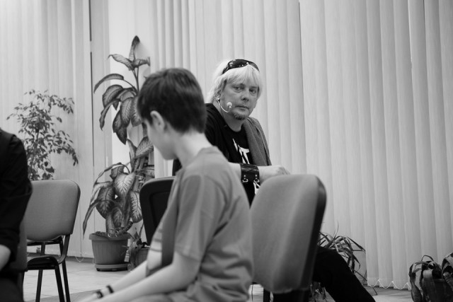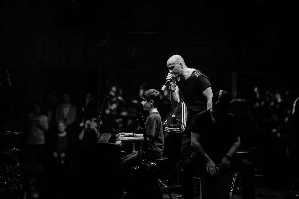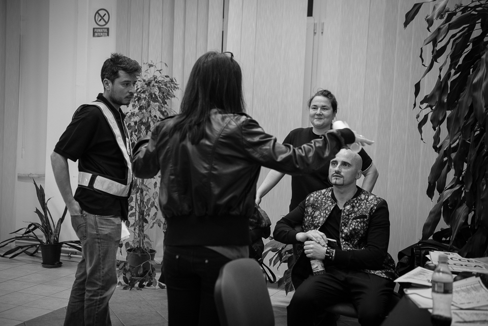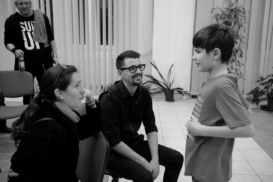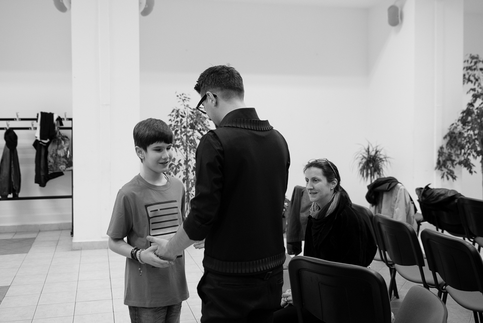 În timp ce fotografiam se deschide ușa. Intră o mamă și al său fiu. N-am apucat să privesc atent și n-am înțeles despre ce e vorba. „George, cu el vei merge și el te va aduce pe scenă, bine?”, îi spune Adi băiatului. Atunci am aflat că-l cheamă George, iar după câteva minute i-am aflat și povestea. O puteți citi câteva rânduri mai jos. Mie mi-a înmuiat picioarele.