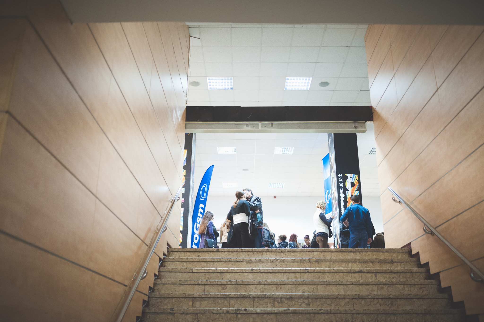 Câteva minute studenții încep să intre în Sala Polivalentă. Locul începe să fie din ce în ce mai plin în doar câteva minute. Cadrele de mai jos sunt făcute la un interval destul de scurt.