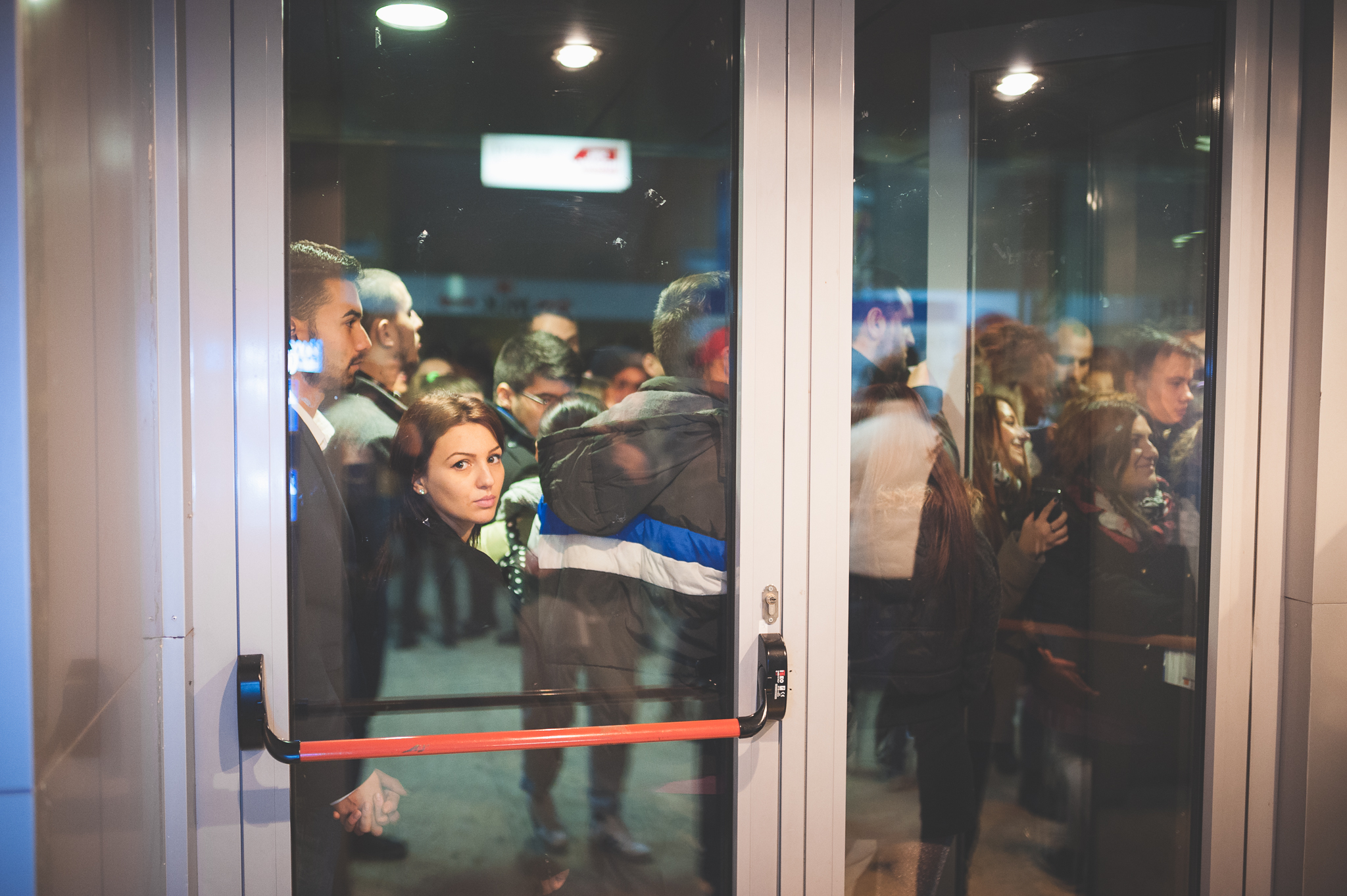La intrare se stă cu telefonul la ureche. Oamenii încearcă să se grupeze, să se adune, iar apoi intră în sală.