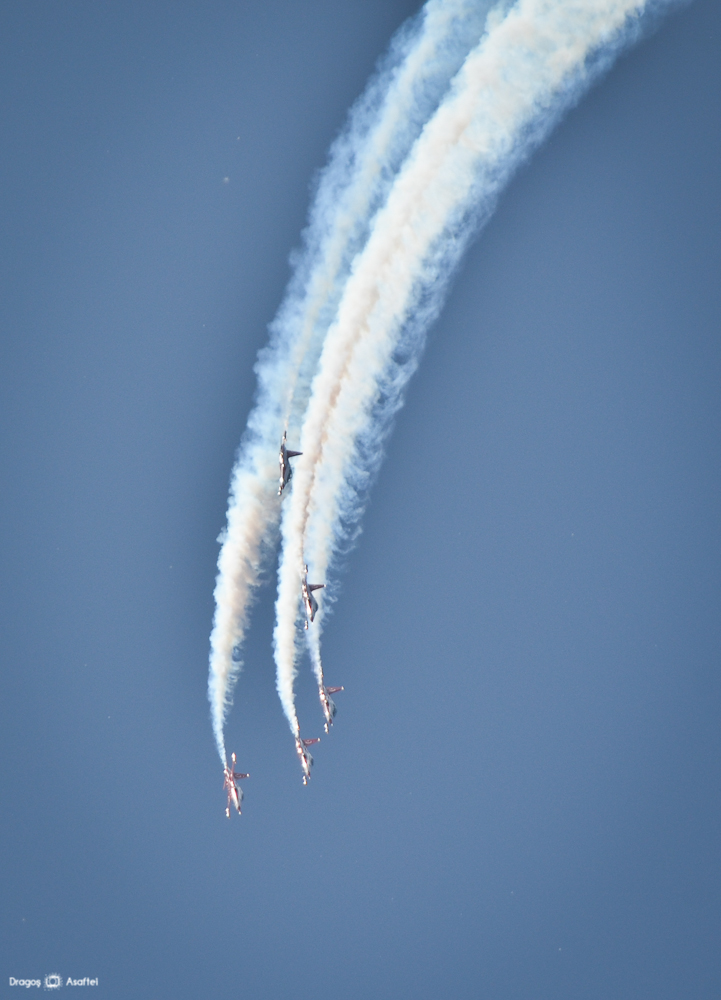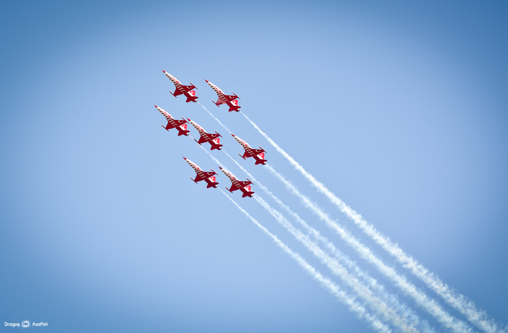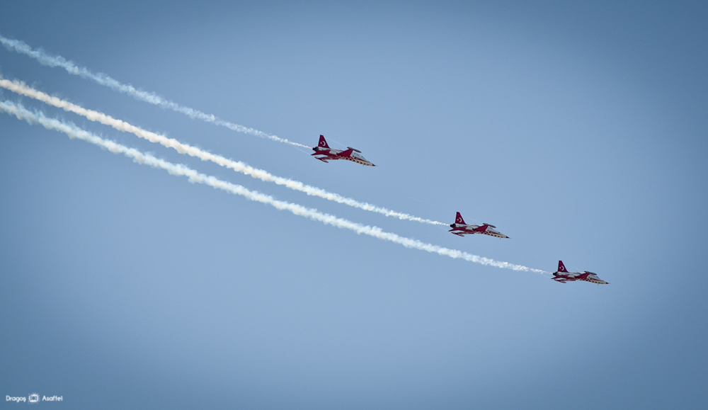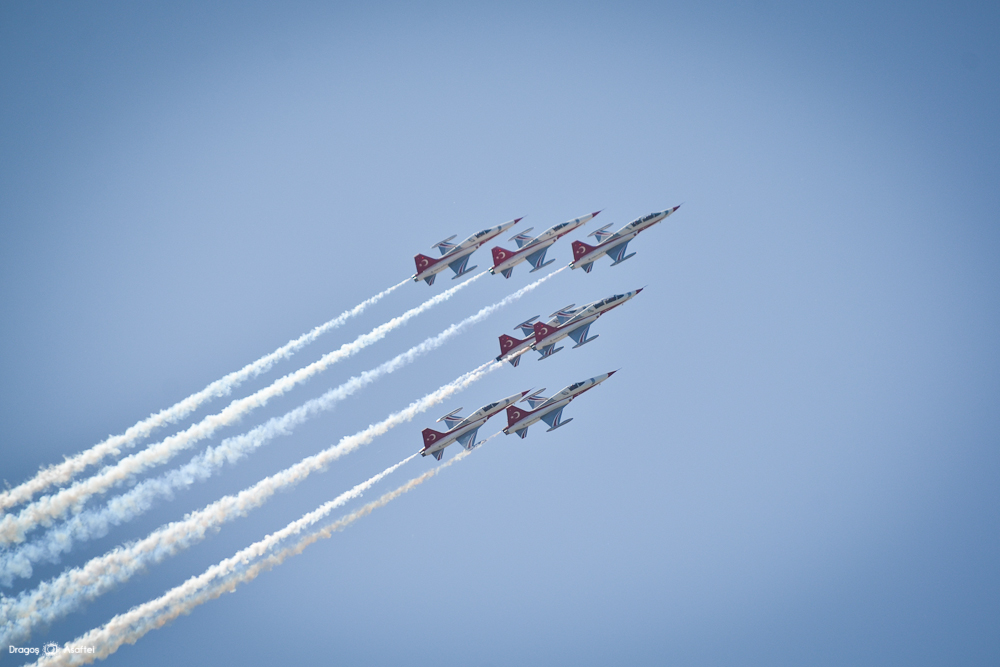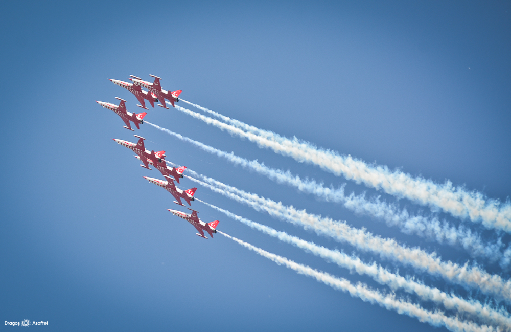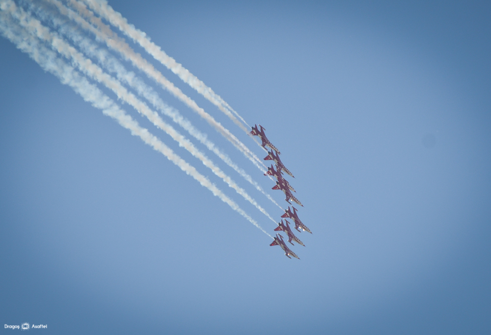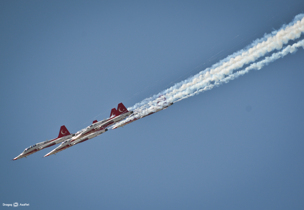 Am surprins însă spectacolul celor de la Turkish Stars și la rândul meu am fost surprins de el. Nu am mai văzut așa ceva niciodată și m-a încântat enorm de mult. Fotografiile le puteți vedea mai jos. Am rămas impresionat de modul în care evoluau pe cerul senin piloții. Absolut superb!