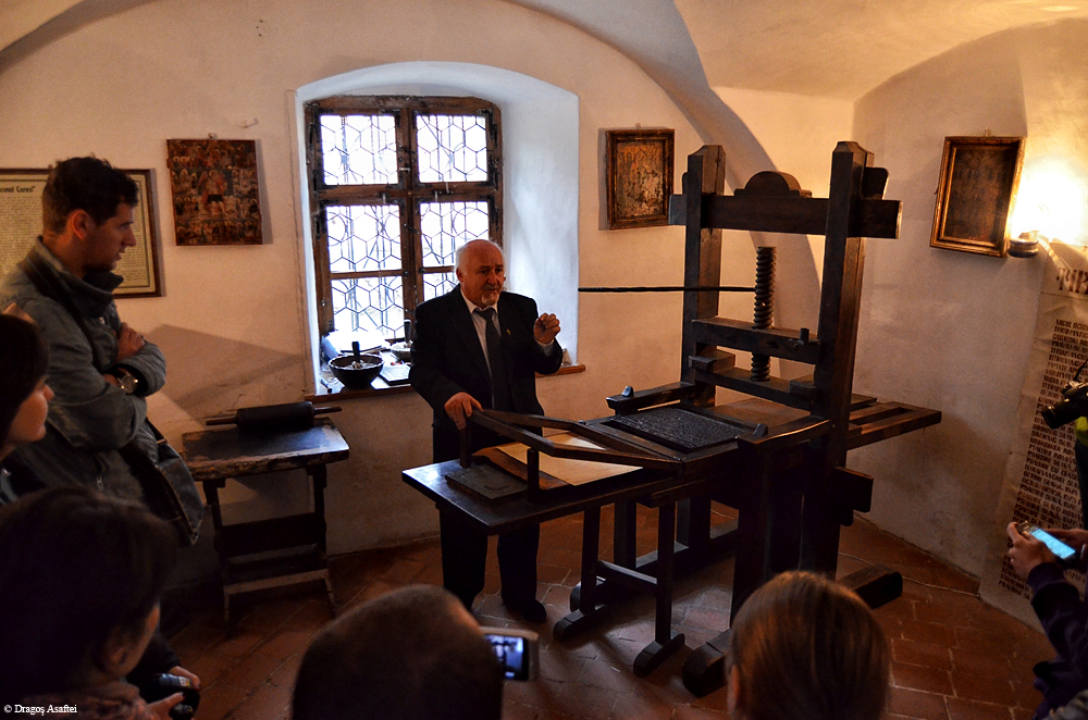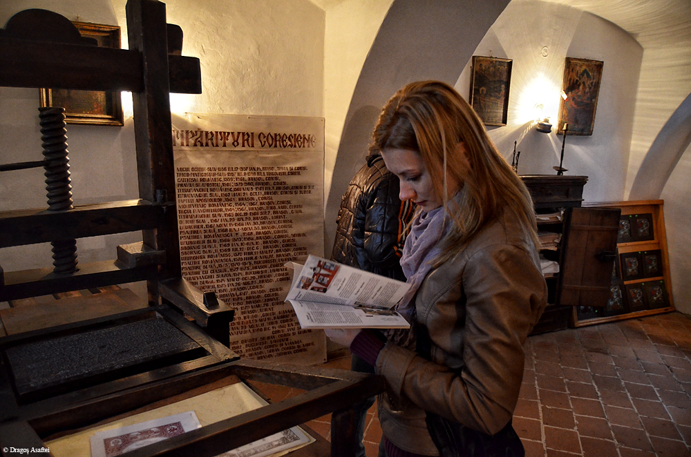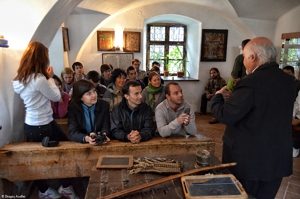 Spre exemplu, vizitând Prima Școală Românescă, am avut ocazia de a vedea istoria limbii și literaturii române și evoluția acesteia. Am văzut prima Biblie tradusă în limba română (cu caractere chirilice), primele documente oficiale și primul manual școlar numit Omilar și apărut în secolul al XI-lea. Mi s-a părut extrem de interesant momentul mai ales datorită domnului profesor Olteanu care a reușit să ne atragă rapid de latura istorică a limbii române. Avea un stil foarte plăcut de a vorbi despre acest domeniu și o făcea cu o pasiune ieșită din comun, motiv pentru care îl admir cu sinceritate!