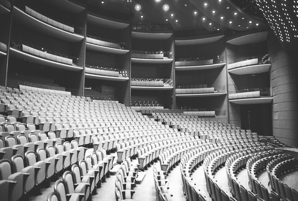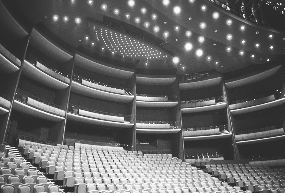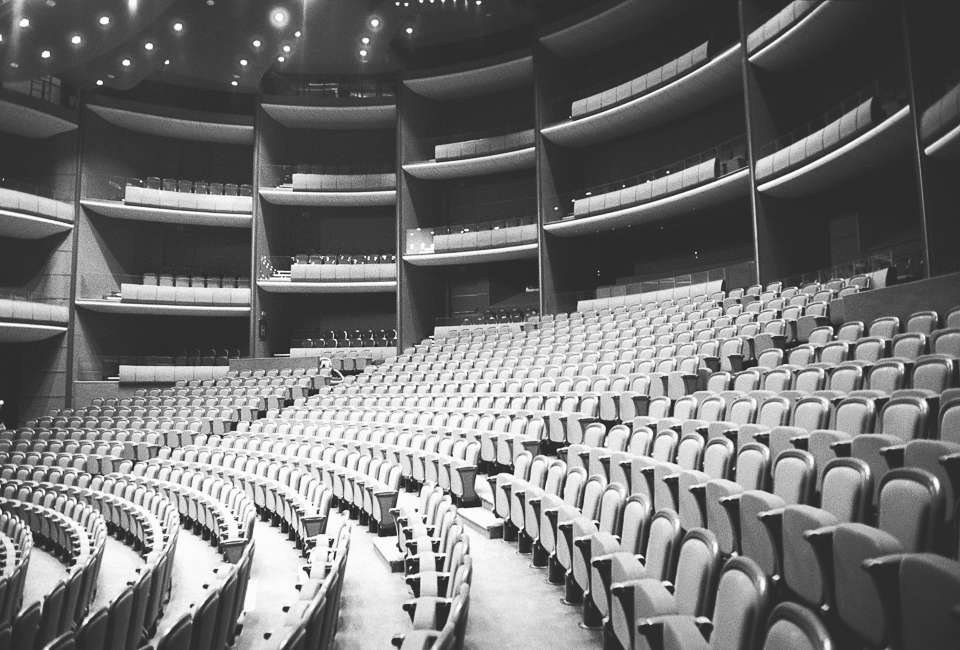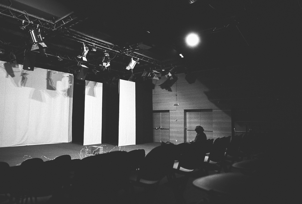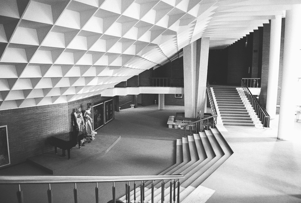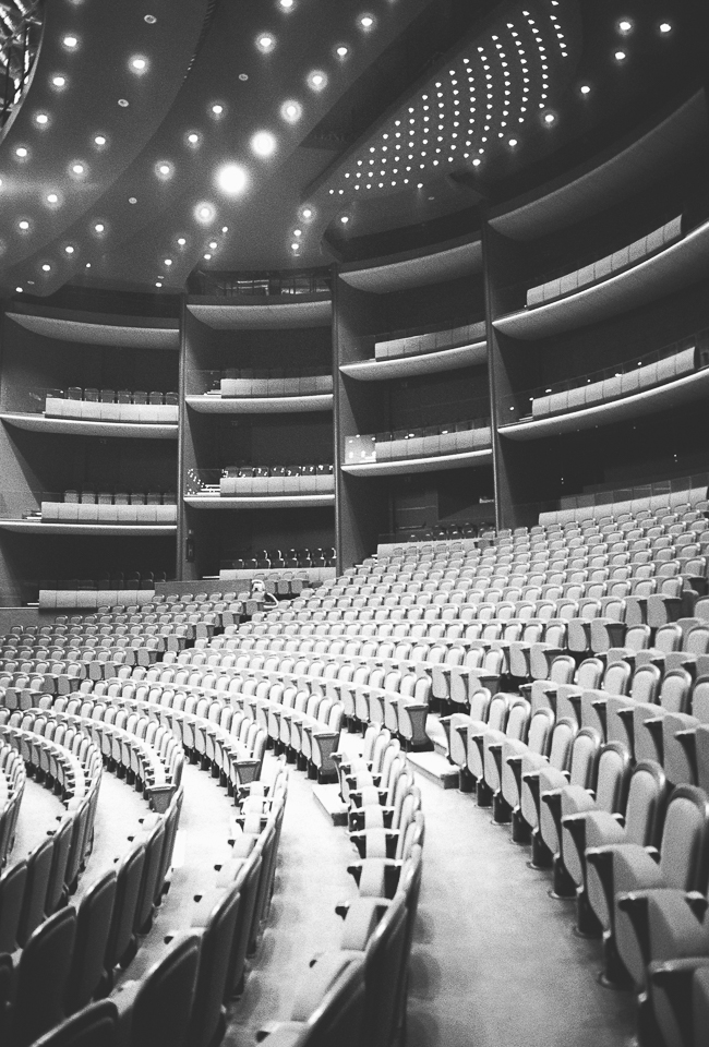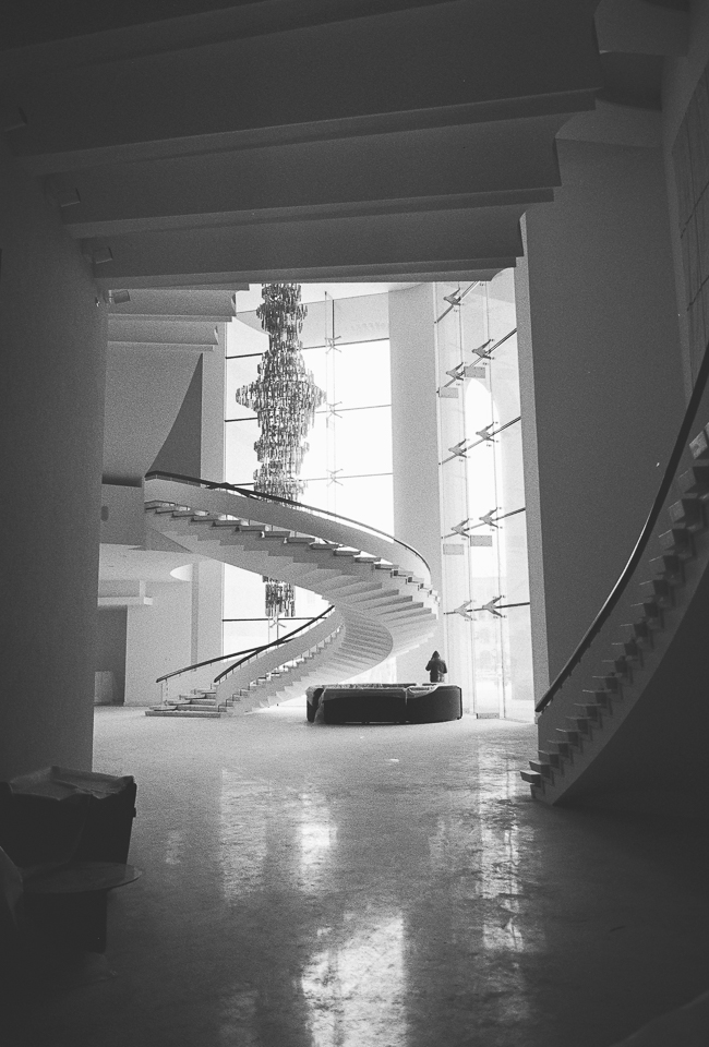 Am profitat astfel de momentele în care nu filmam și-am fotografiat cu aparatul pe film pe care îl aveam la mine. Deși mă gândeam inițial că un film alb-negru ar fi util, mi-am dat seama apoi că m-ar fi ajutat mai mult unul color, mai ales că sălile au o cromatică plăcută, gândită să facă parte din farmecul lor. Totodată m-ar fi ajutat și-un film cu ISO mai mare. Dar cu ocazia asta am mai învățat ceva. Încă experimentez cu fotografia pe film.