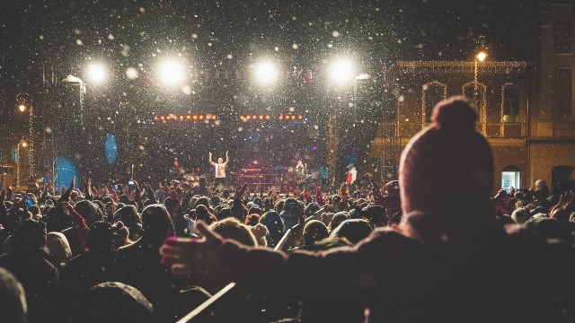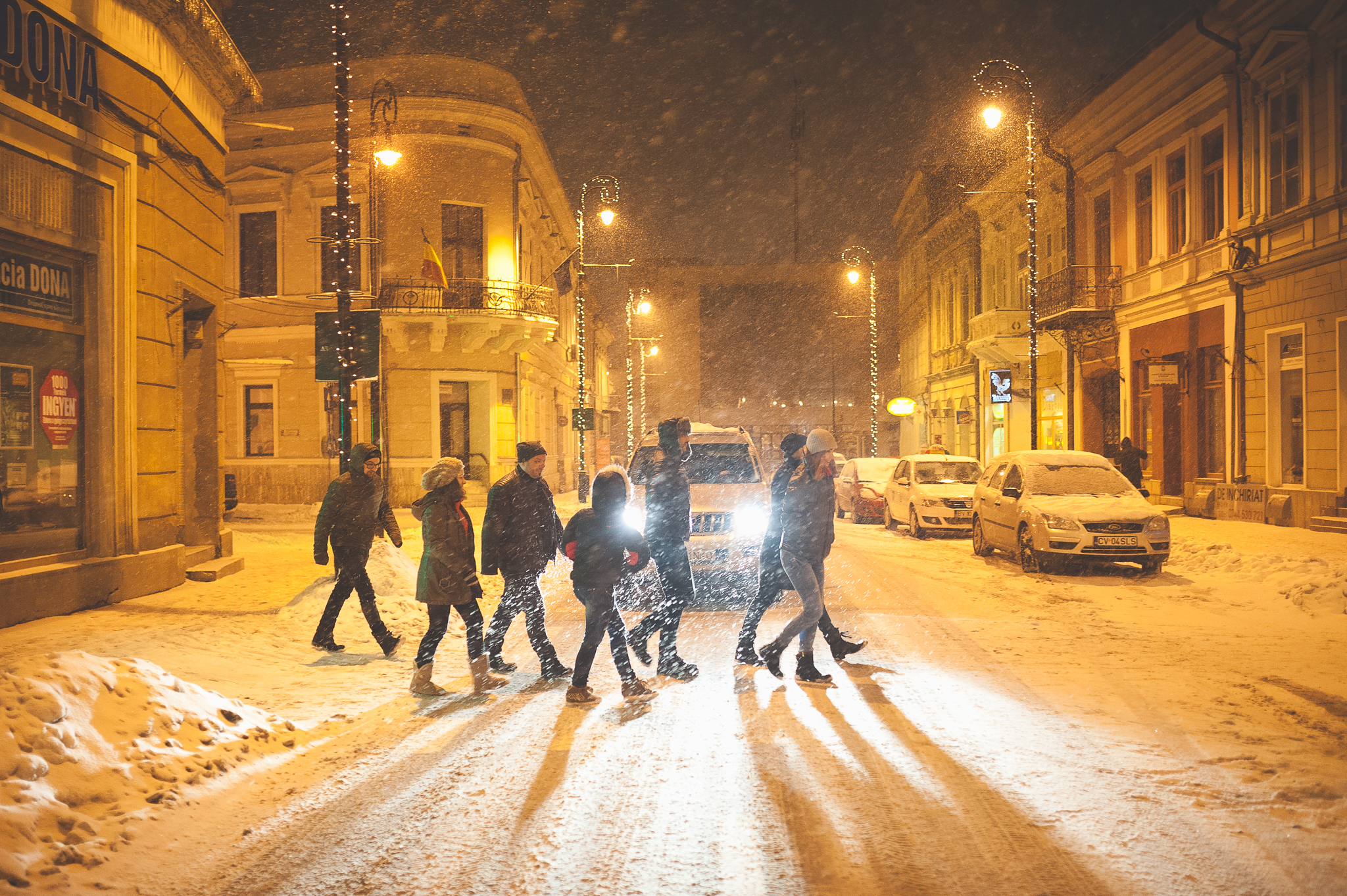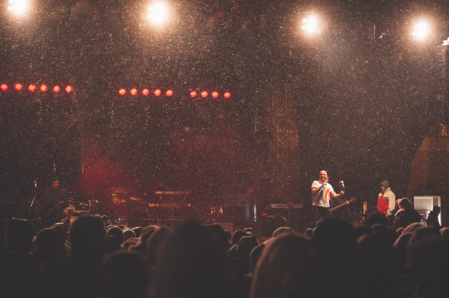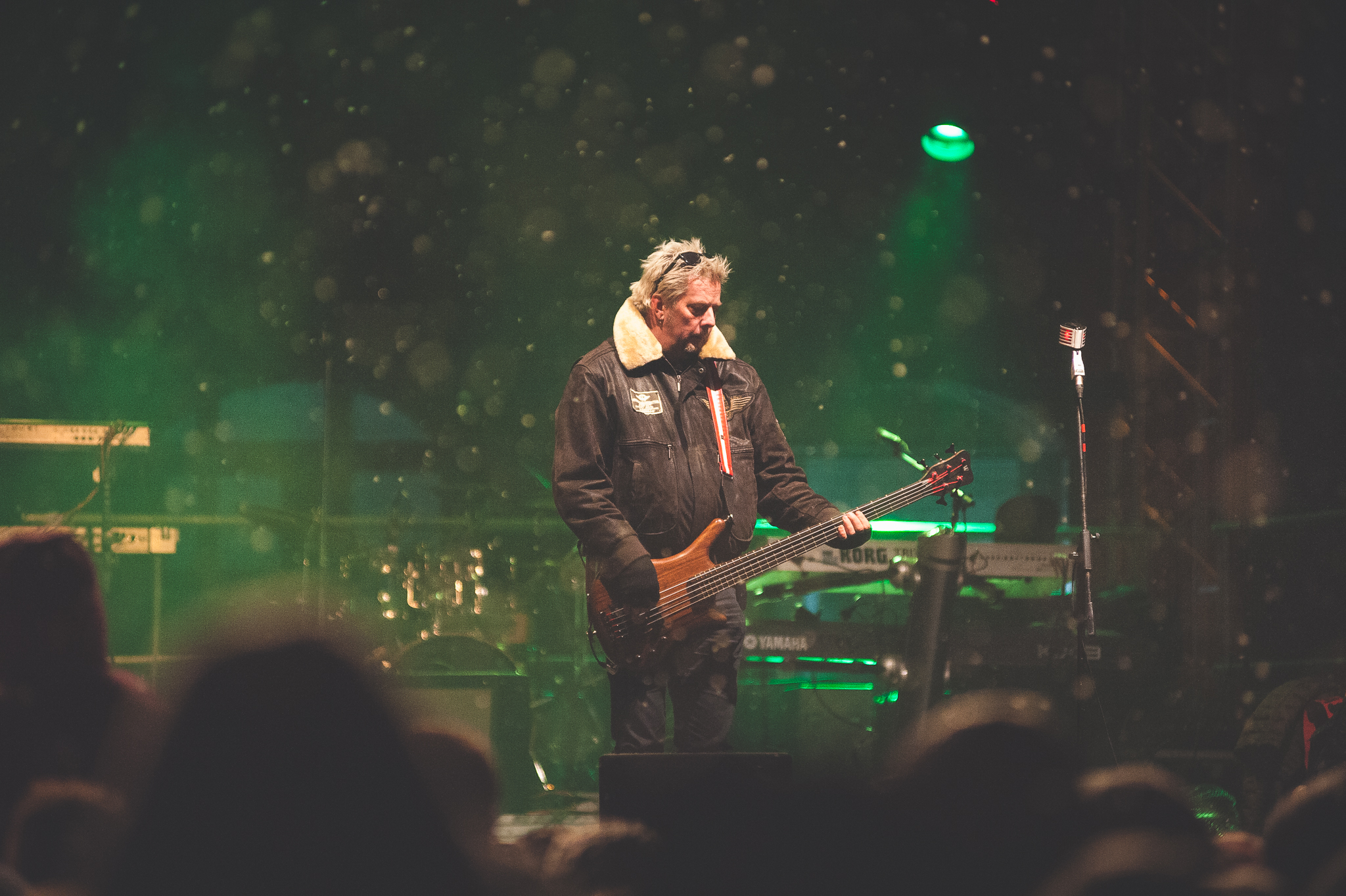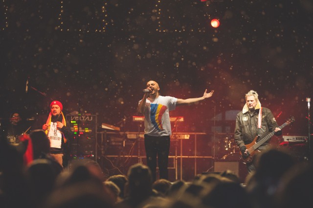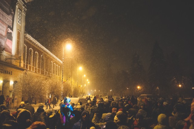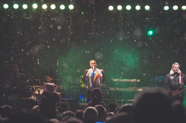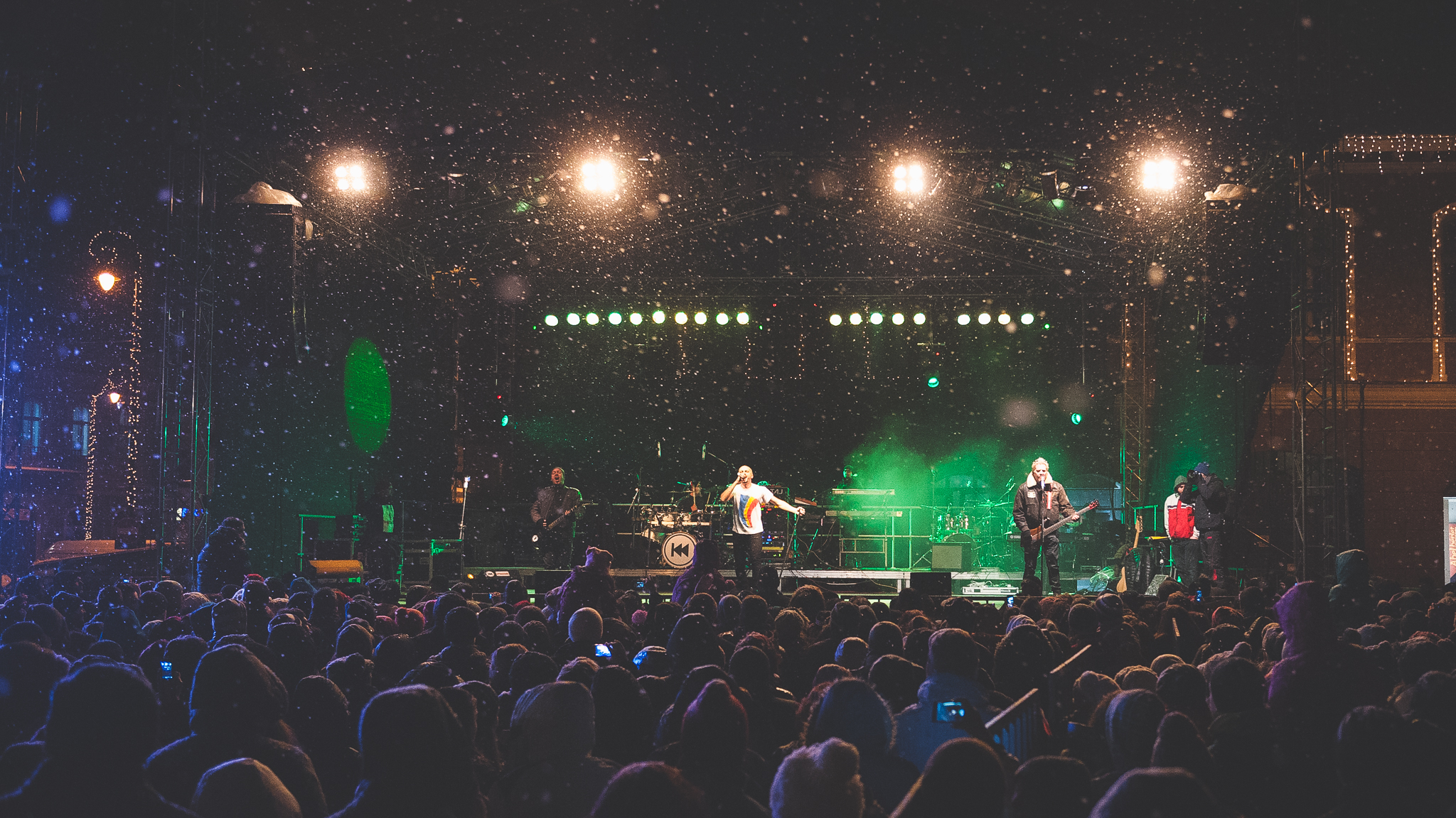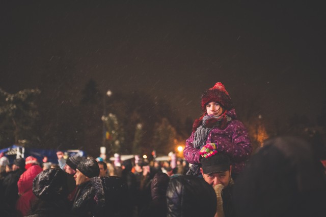 Începuse să ningă chiar înainte să urce Voltaj pe scenă. Când am privit către piață și-am văzut cum ninge m-am simțit ca-n basme. Norocos și fericit. N-am mai prins o așa vreme la niciun alt concert pe care l-am fotografiat în aer liber. Și veți vedea în fotografii cât de mult a contat și ajutat toată ninsoarea asta.