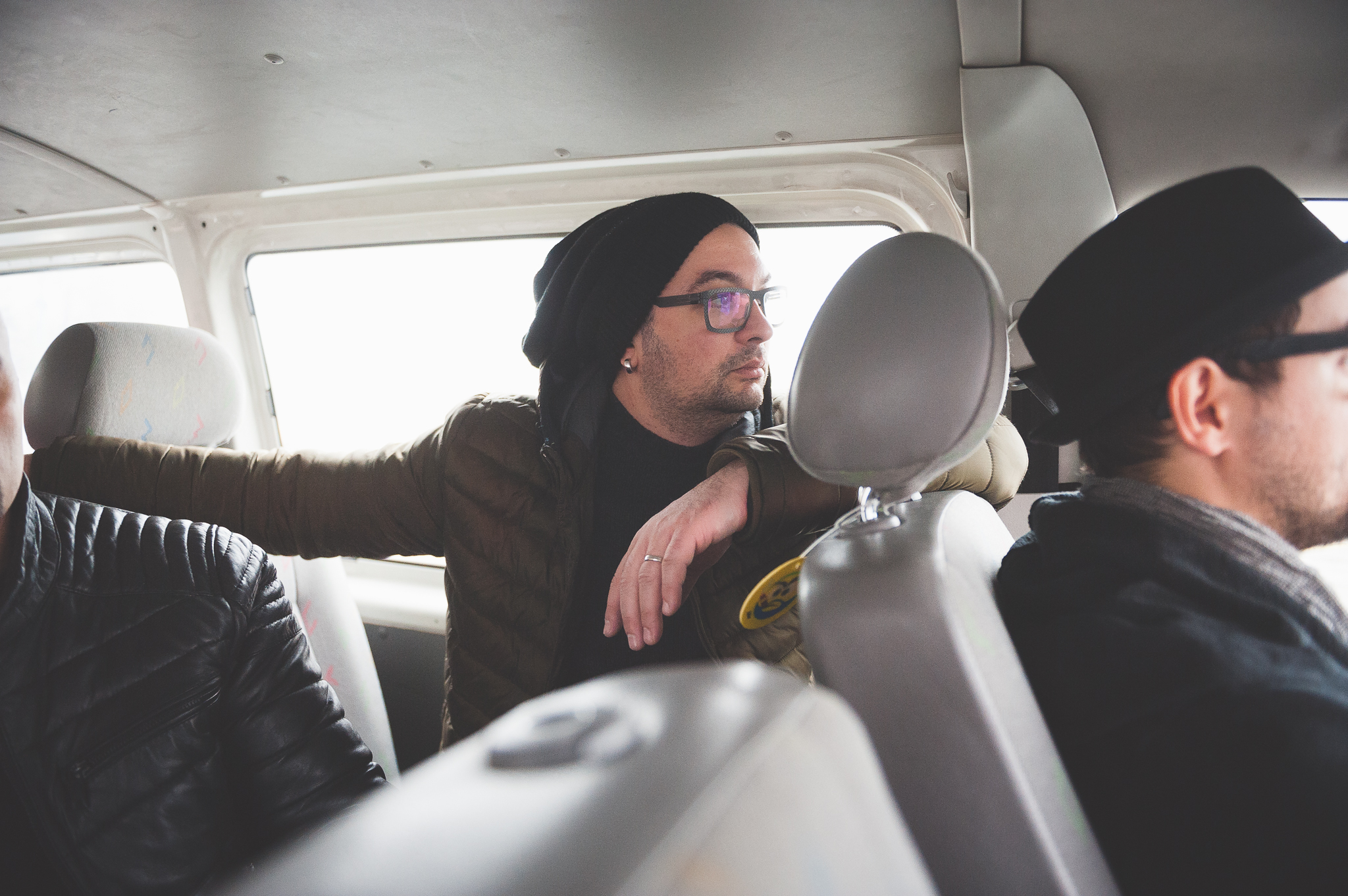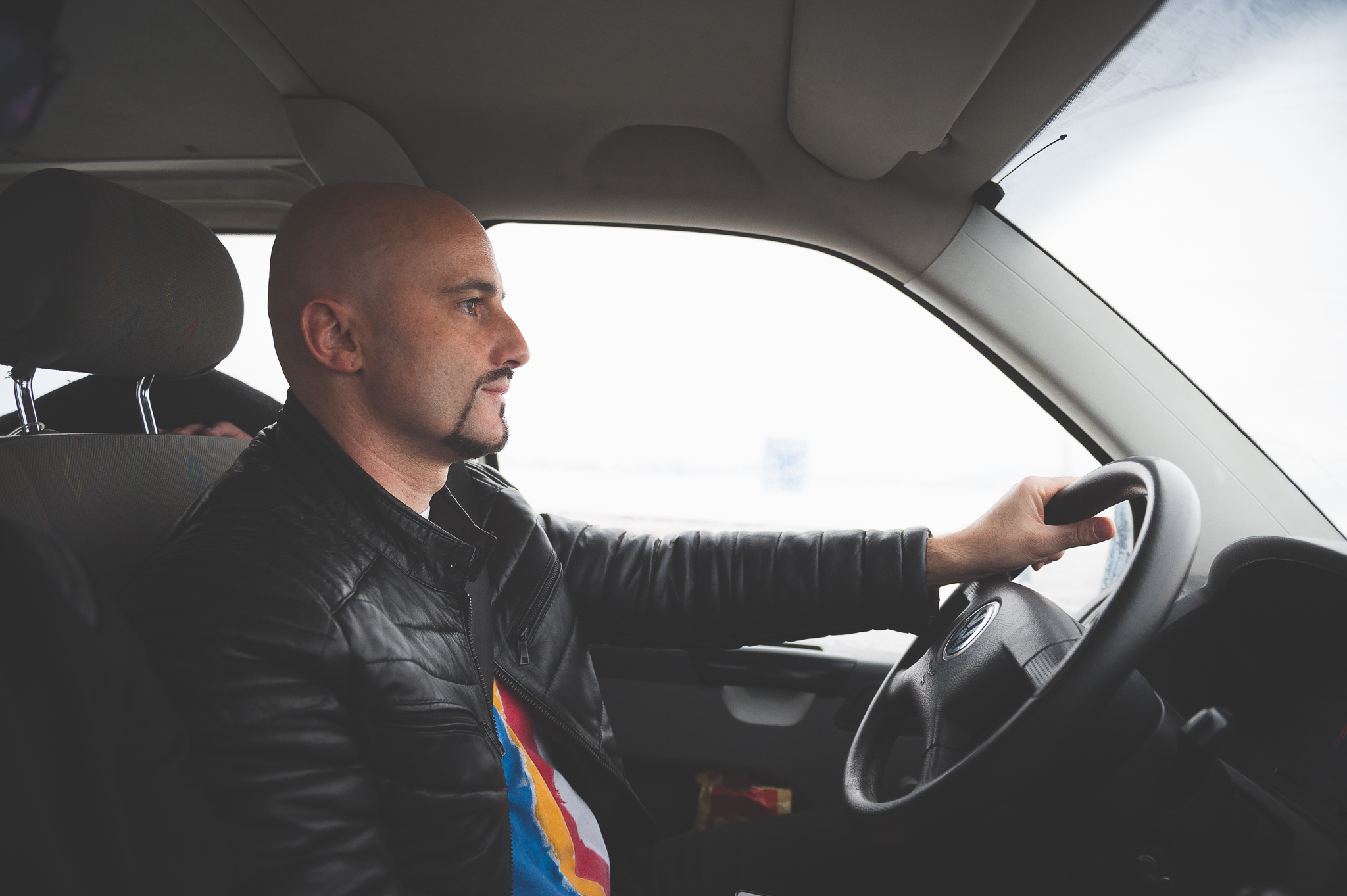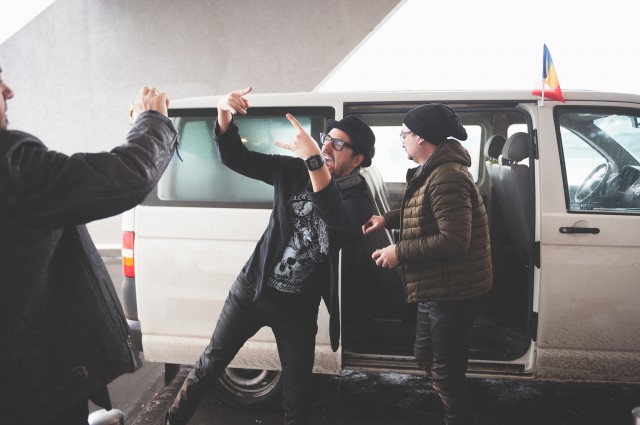 După terminarea concertului din aeroport am pornit către Sfântu Gheorghe. Mai aveam câteva ore până la 18:00 când începea spectacolul. Și mai bine de 200 de kilometri în față. Am avut noroc că vremea a ținut cu noi. Și totodată am avut parte de-o călătorie sigură și tare plăcută. O dată datorită atmosferei făcută de trupă și de șansa de-a călători în formula 8+1 de care vă povesteam. Și o dată datorită stilului tare fain de condus pe care-l are Călin.