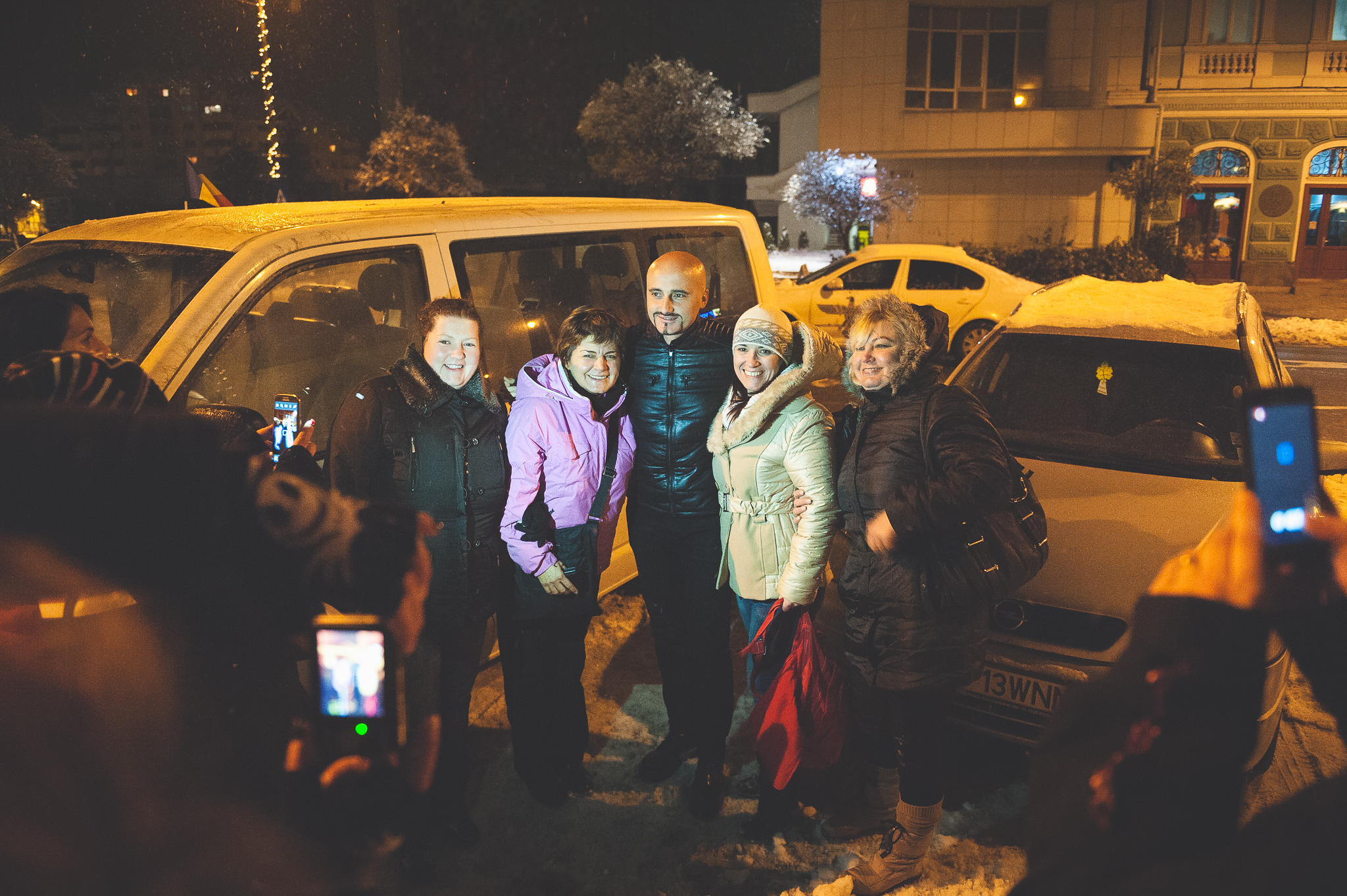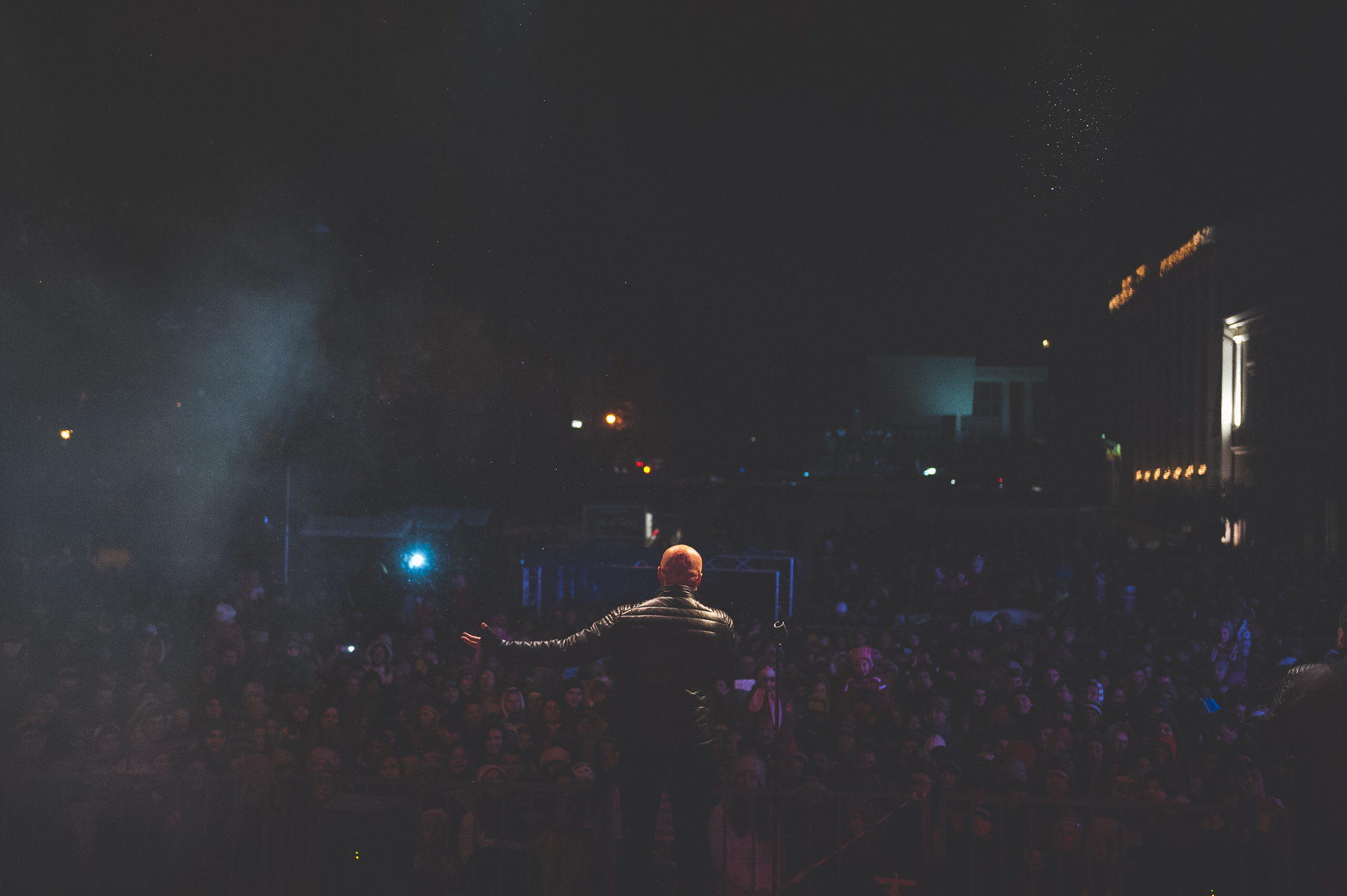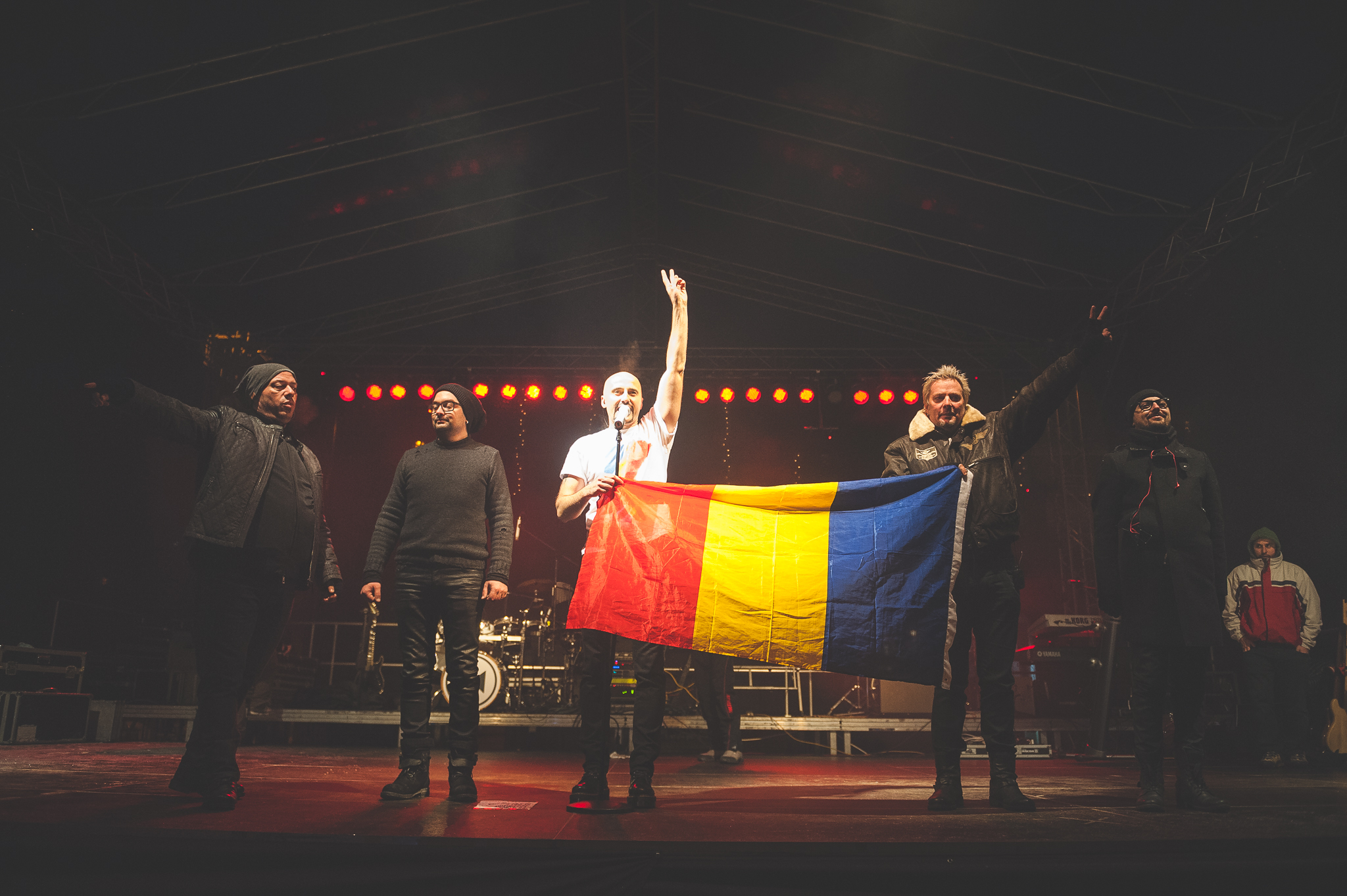 Tot în fotografii veți vedea o mulțime de copii care erau veseli și energici în ciuda celor minus 5 grade care erau afară. Veți mai vedea zâmbete. Veți mai vedea întreaga trupă pe scenă. Și-l veți mai vedea pe Călin cântând în tricou în condițiile de care vă spuneam. Este respectul pe care el și întreaga trupă l-au arătat față de miile de oameni venite la concert.