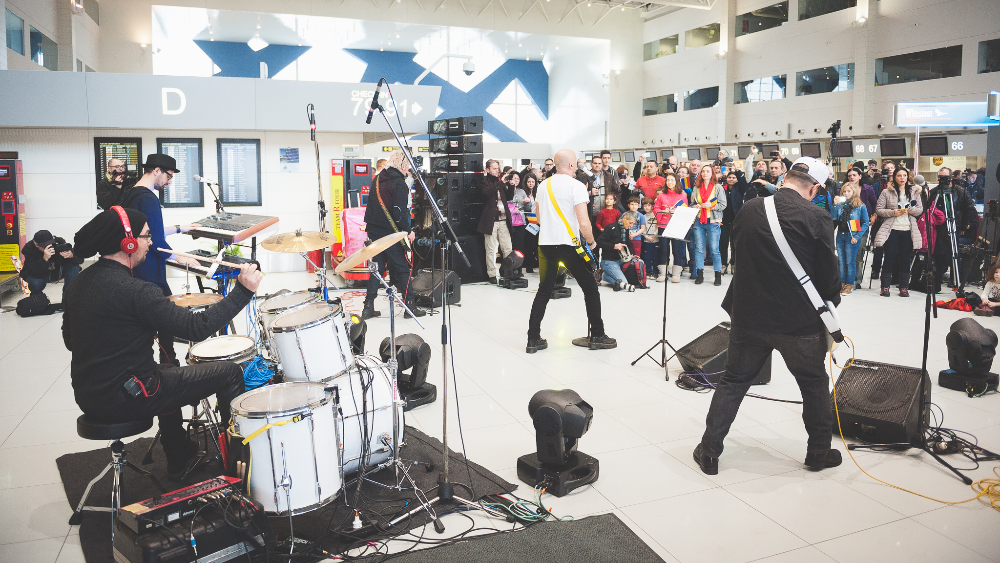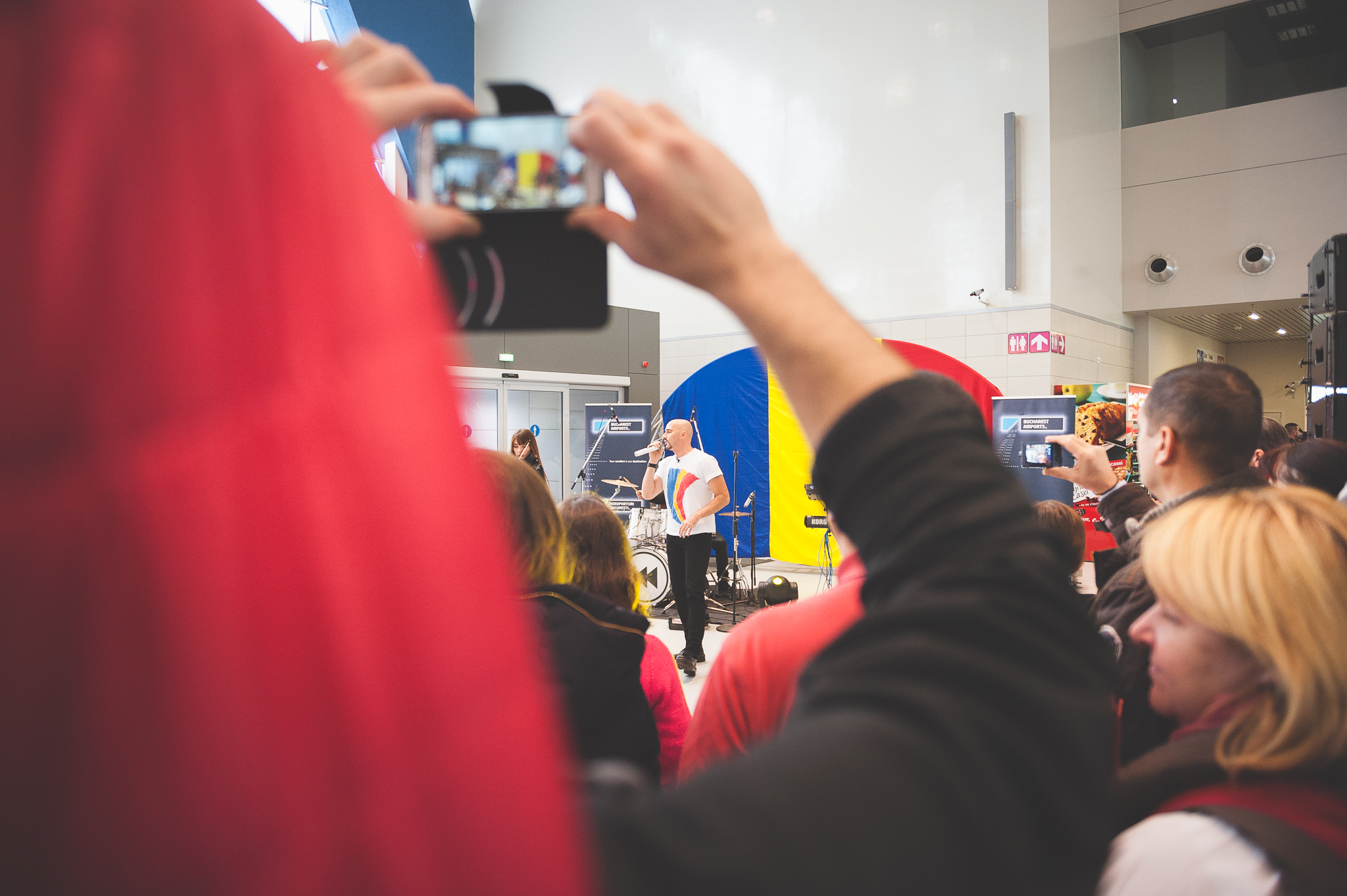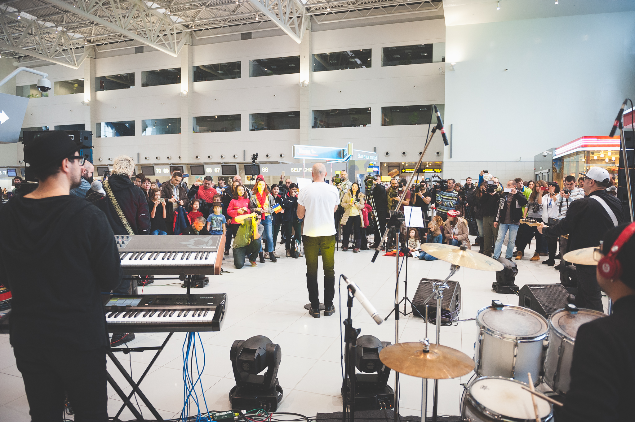 Se strânseseră în timpul concertului mulți oameni în aeroport. Asta în ciuda faptului că din cauza unei greve multe zboruri au fost anulate ori întârziate, iar în gândurile oamenilor era prioritară, evident, căutarea unei soluții pentru rezolvarea situației. Chiar și-așa au fost mulți oameni care și-au rupt câteva minute din drumul către avion ca să-i asculte pe băieții de la Voltaj.