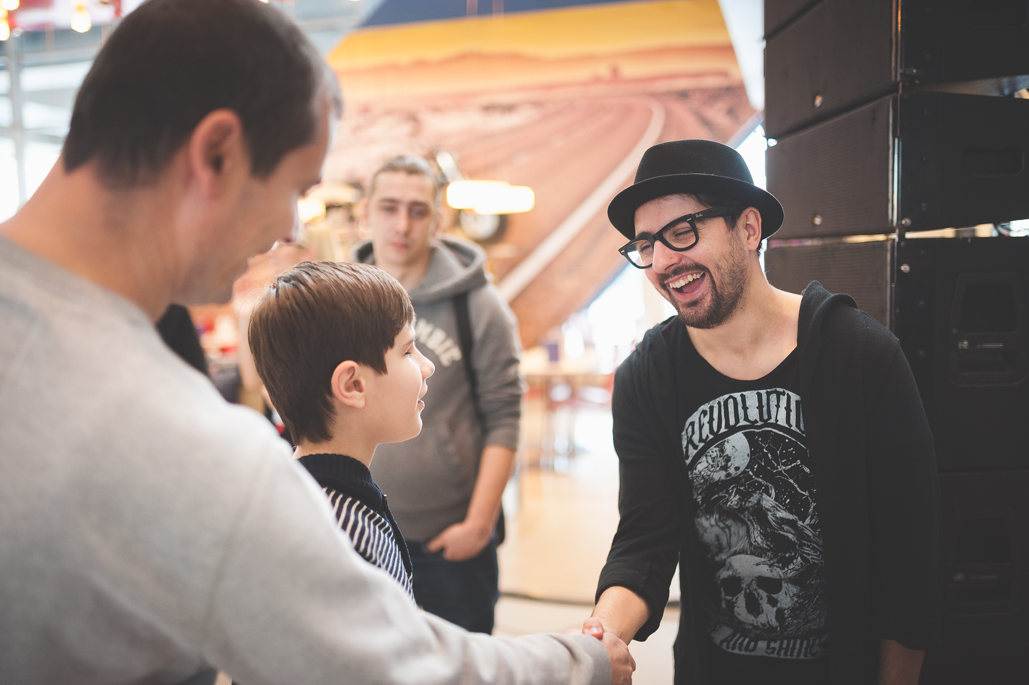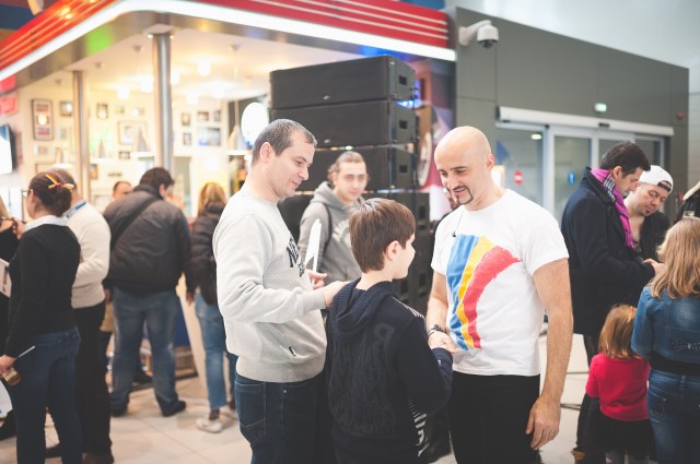 Prezent a fost și George, juniorul pe care-l știți cu siguranță din alte concerte. Povestea emoționantă a lui am spus-o prin fotografii în fotoreportajul concertului Meci de box. I-a luat pe surprindere pe toți cei din trupă. Nimeni nu știa că urma să vină la concert. Dar a venit și a transmis în jurul lui multe zâmbete pline de energie.