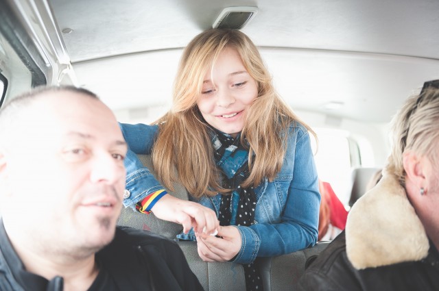 Am călătorit toată ziua în formația 8+1 (ca-n mașina care ne-a purtat): Călin, Oliver, Valeriu, Gabriel, Adrian, Gloria, Maria, Nineta + Dragoș, subsemnatul. Pe primele cinci nume le știți. Următoarele trei fac parte din povestea zilei care a început inițial pe Facebook sub forma unui concurs. Câștigătorul concursului urma să petreacă Ziua Națională alături de voltaj. Nineta a fost câștigătoarea și a venit alături de cele două fetițe ale ei: Gloria și Maria.