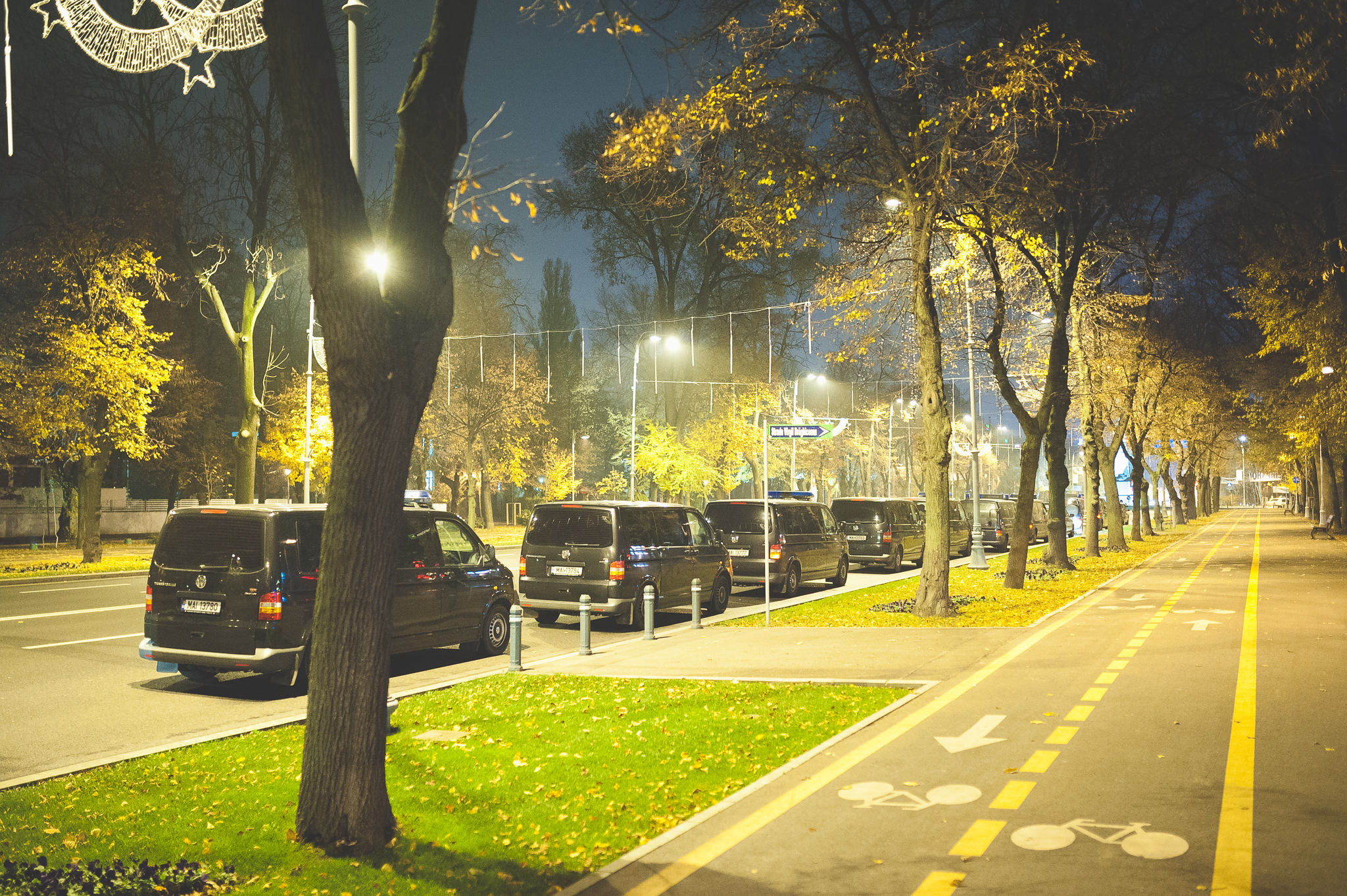 Acesta a fost traseul făcut aseară de protestatari și la care m-am alăturat să fotografiez încă de pe la ora 9. Am venit de undeva din spre Aviatorilor și vedeam cum sunt parcate câteva mașini de jandarmi. Încă n-auzeam mulțimea. 5 minute mai târziu a început să se audă un sunet puternic. Se-auzeau oamenii, dar nu se vedeau. Erau paralel cu mine, pe Kiseleff. Am traversat în fugă parcul care leagă cele două artere și am ajuns.