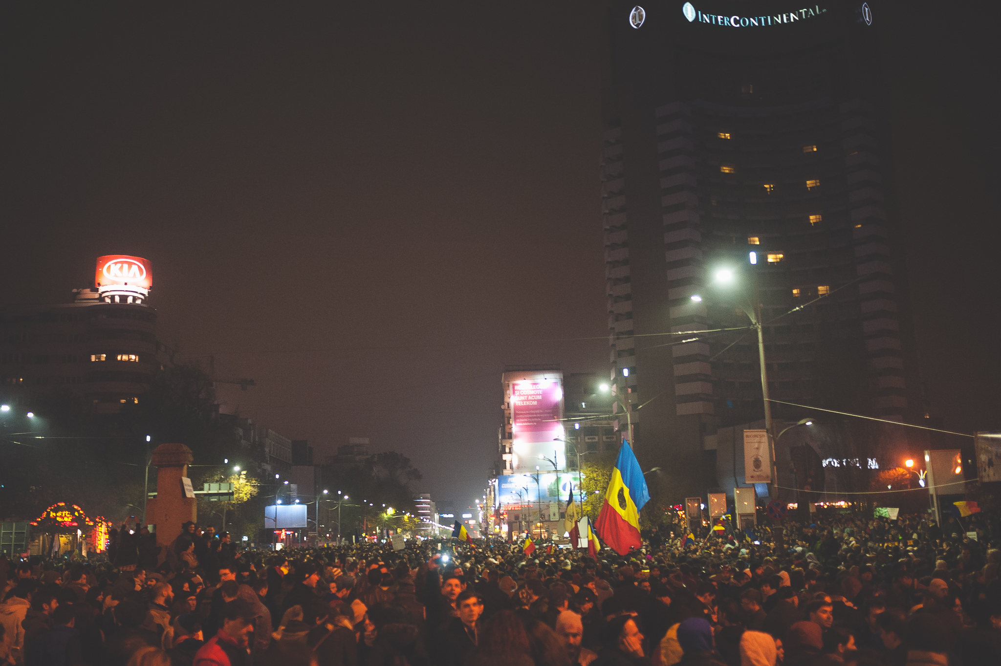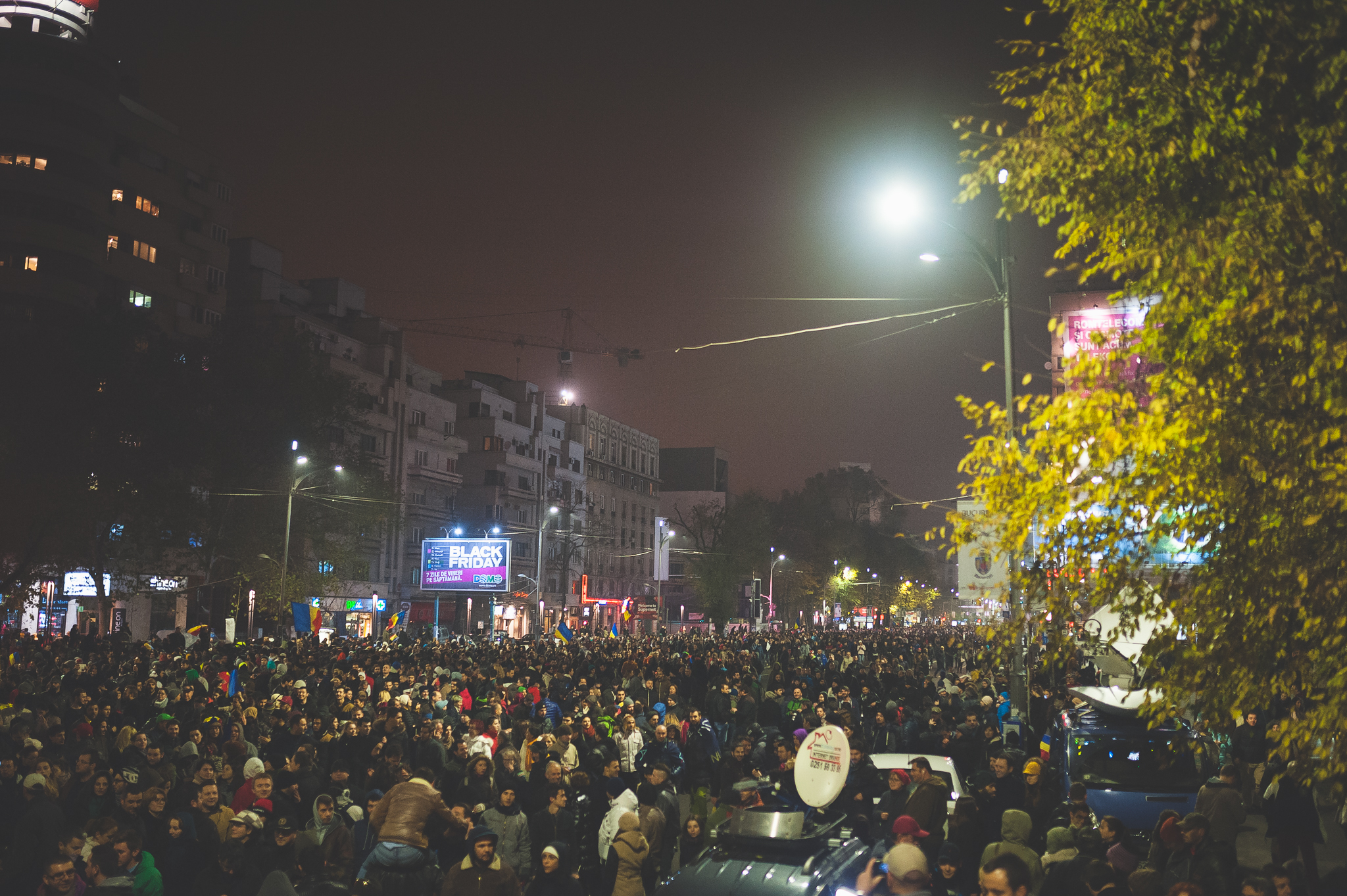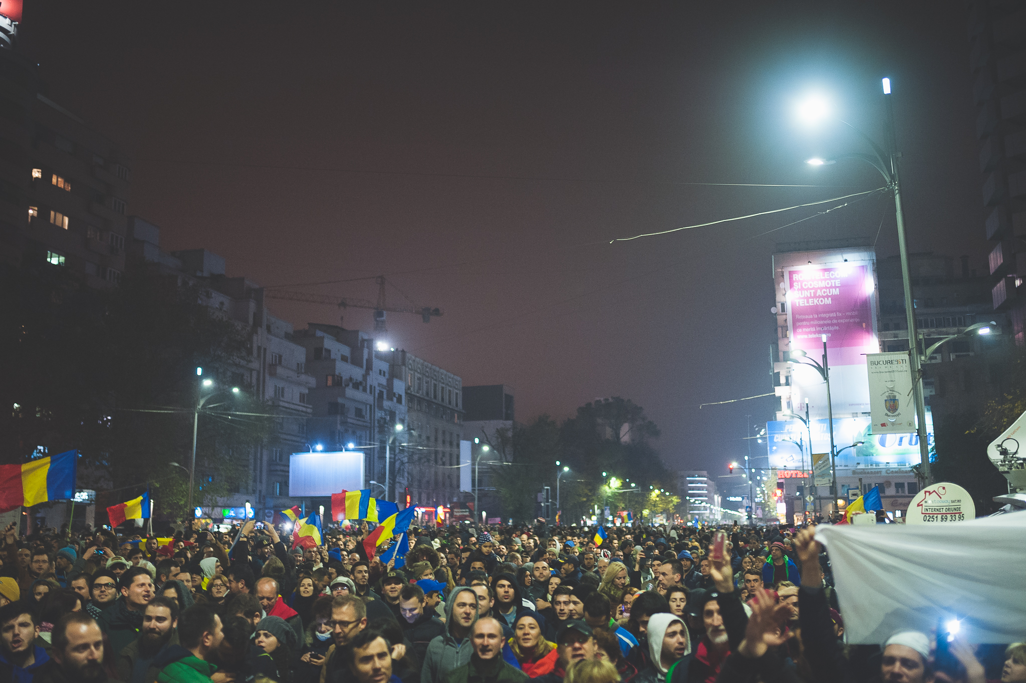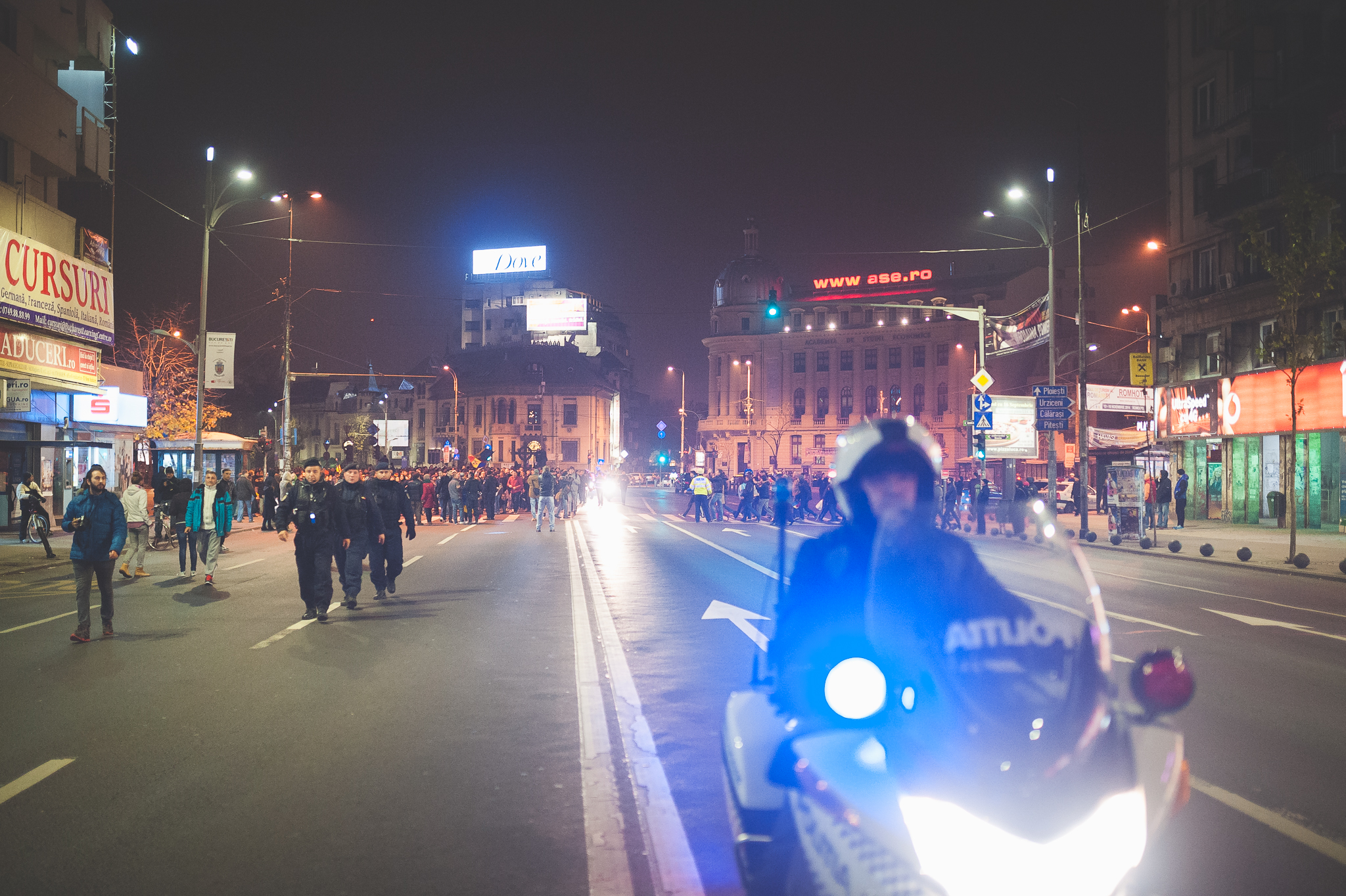 „– Vezi că sigur n-ai să ai internet aici!”, îmi zice unul dintre jandarmi dându-mi de înțeles care-i situația. Mulțimea protestează în continuare. Jandarmii vin în număr din ce în ce mai mare. Era ora 22:00 și începeau s-apară primele estimări.