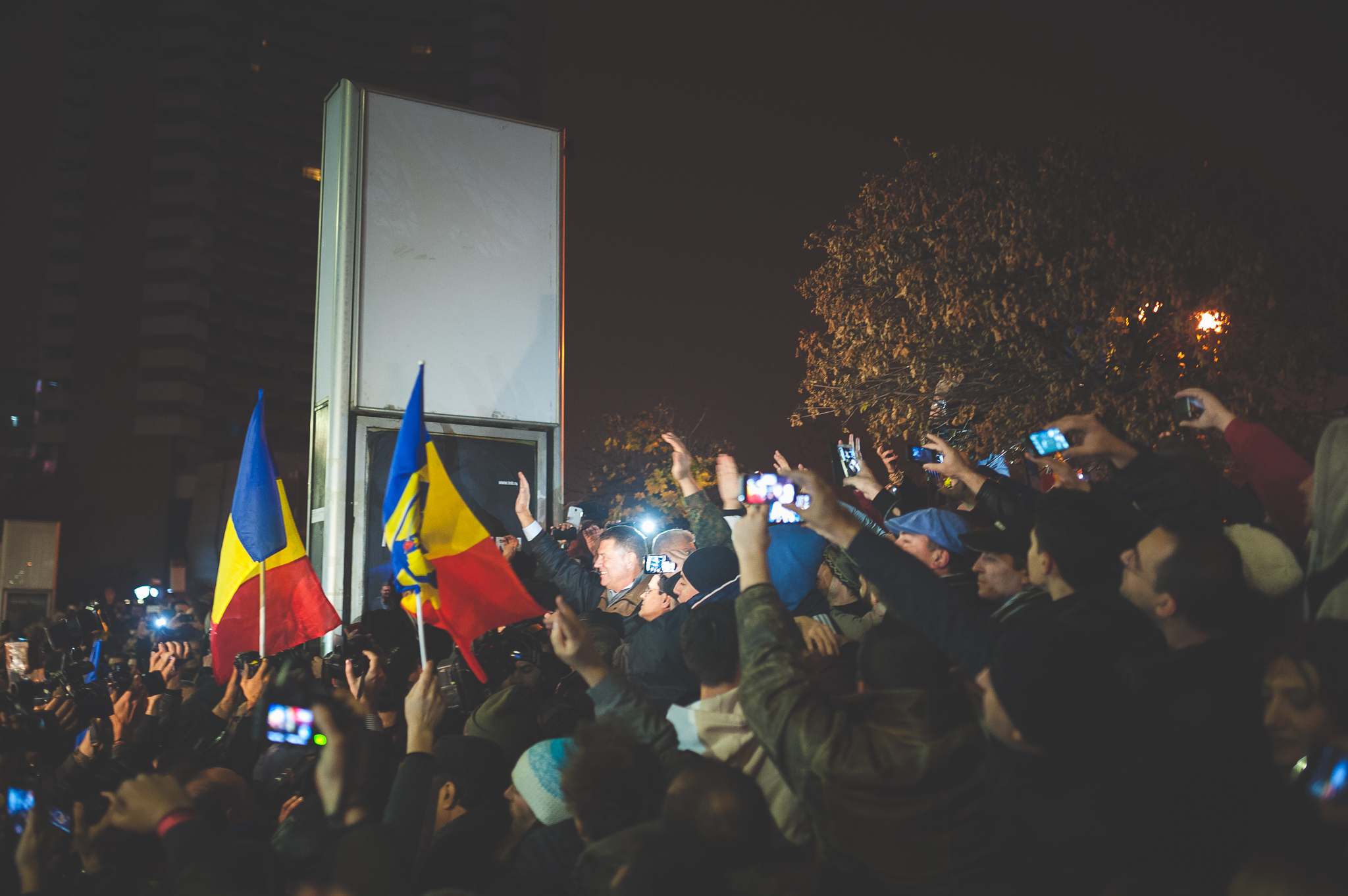 10 minute mai târziu Iohannis apare din mijlocul mulțimii. N-a avut portavoce sau microfon, deși toată piața striga să i se trimită rapid. Erau multe în mulțime, dar n-au ajuns la el. Probabil c-a fost decizia lor și are anumite motive la bază. Cert e că Iohannis s-a plimbat preț de 20 de minute printre oameni. Eu trăiam atunci cea mai mai aglomerație cu care m-am întâlnit vreodată. Zeci de jurnaliști încercau să facă material cu Iohannis, să-l filmeze, să-l fotografieze, să-l intervevieze, iar eu eram în capătul celălalt al mulțimii.