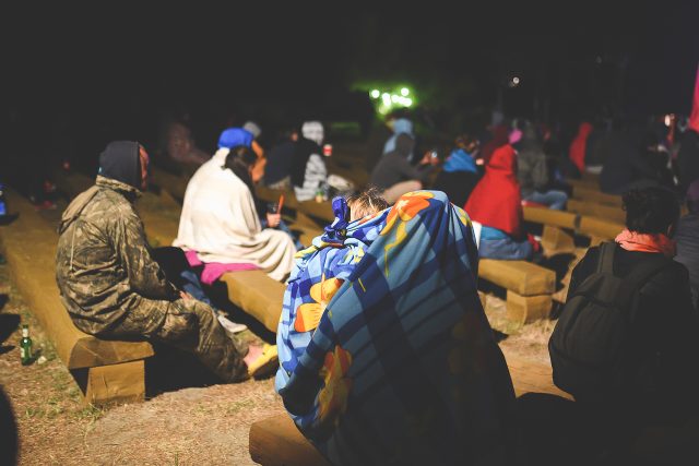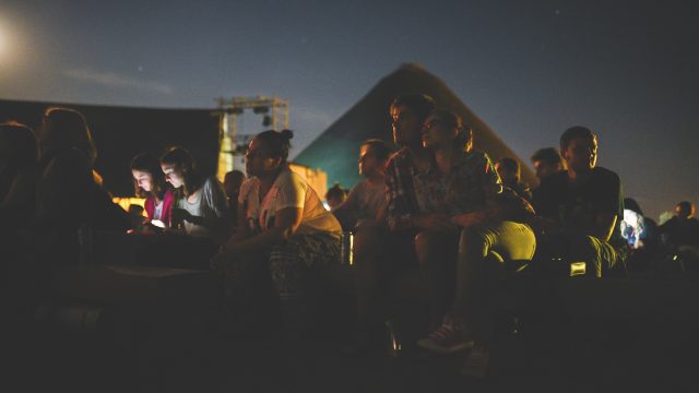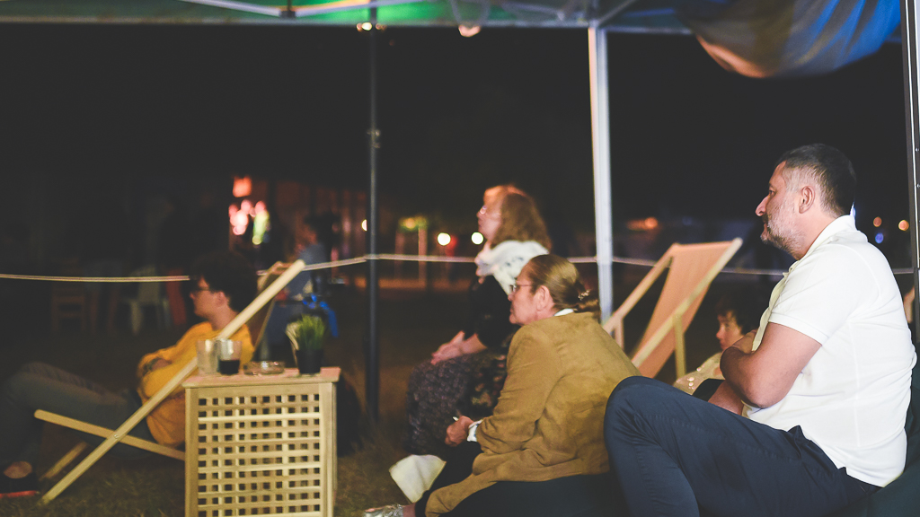 Revenind la atmosfera din afara sălilor de cinema, observam pe zi ce trece tot mai multe detalii care să-mi arate cât de mult înseamnă filmul pentru oamenii veniți aici. Chiar în ultima mea seară la festival, vremea s-a schimbat destul de mult: începuse un vânt aprig, iar temperatura scăzuse semnificativ față de cum era în timpul zilei. N-a fost o problemă pentru cei veniți aici să vadă, atunci, filmul „Câini” în regia lui Bogdan Mirică. Cum priveai, vedeai o mare de oameni ascunși sub pături, îmbrăcați în toate hainele pe care le aveau la ei. Însă asta era fix ultima lor problemă, atât timp cât s-au simțit confortabil și au rămas în fața ecranului în aer liber mult timp după miezul nopții.