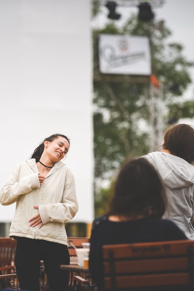 Îmi mai aduc aminte cum într-o altă seară, în pauza dintre filme, am dat de un grup tare fain de tineri veniți la festival. Se așezaseră pe iarbă, în cerc, și începuseră să cânte la chitară tot felul de melodii despre sesiune, restanțe, distracție, prieteni și studenție. Se vedea că se simt cu adevărat bine.