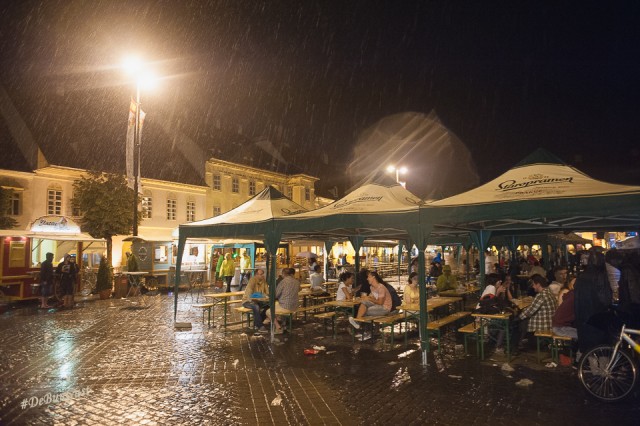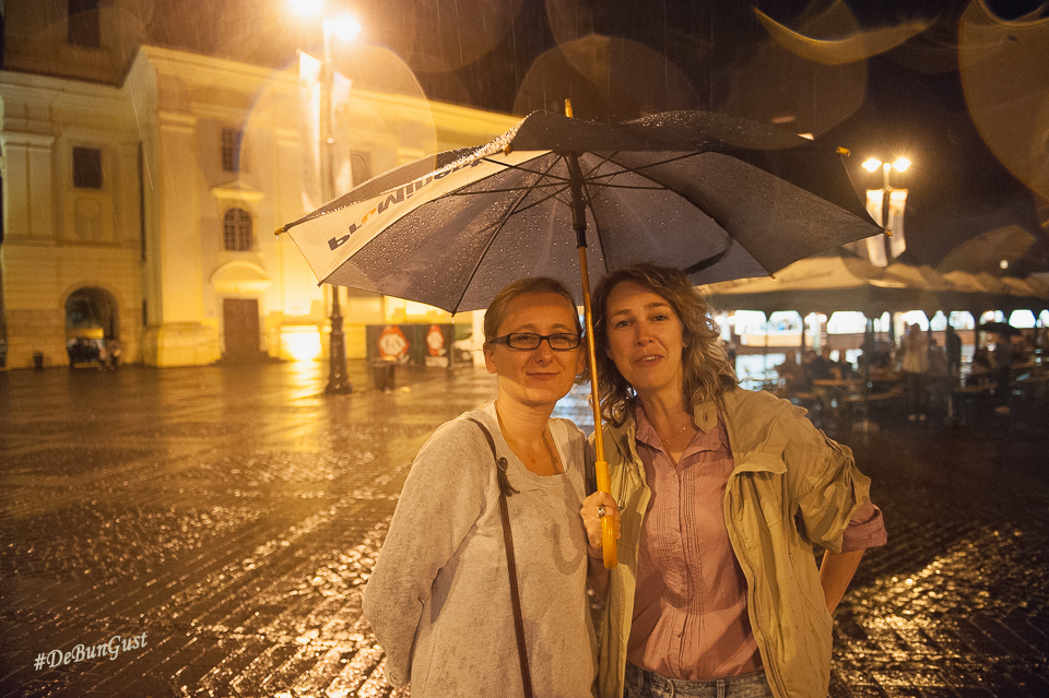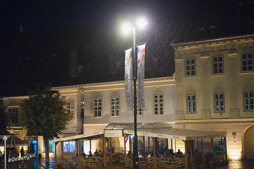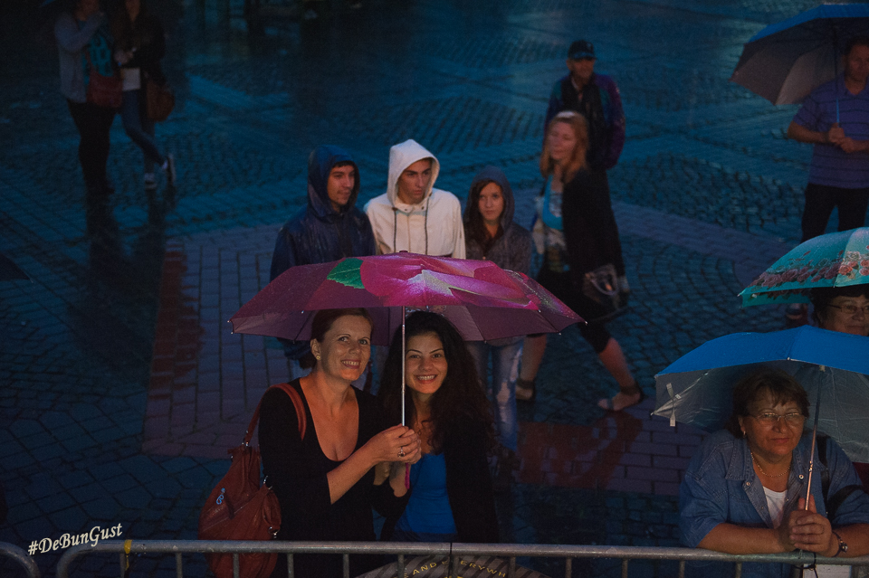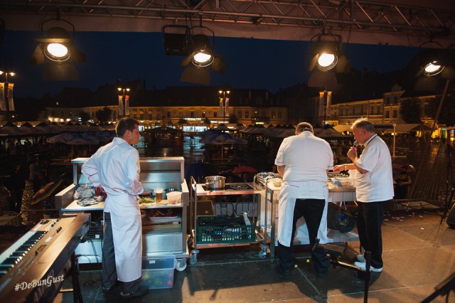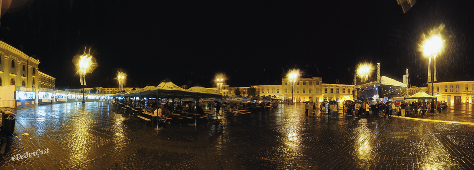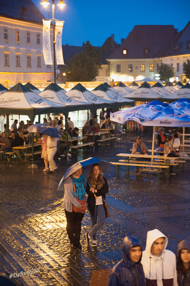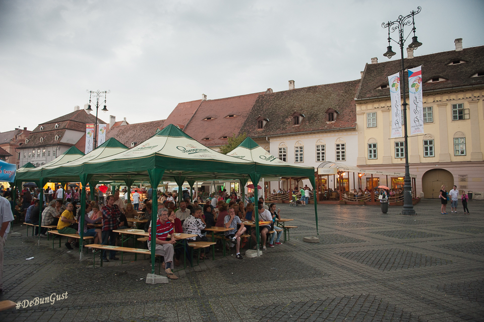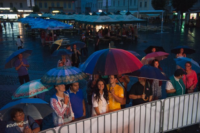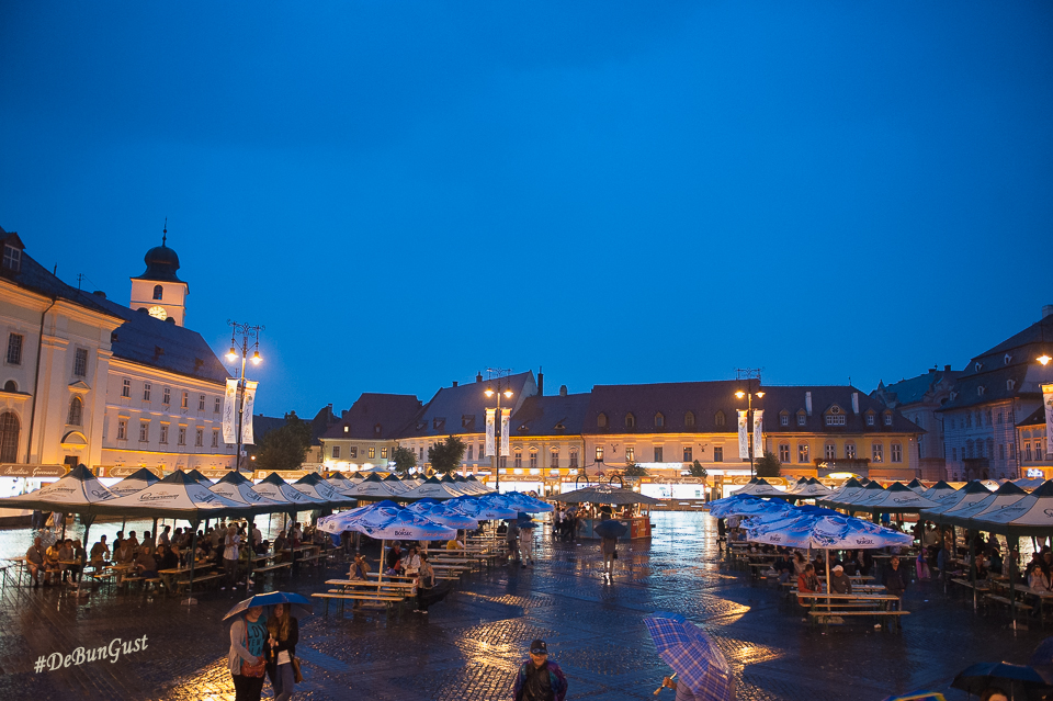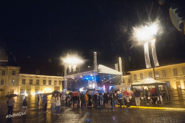 Festivalul s-a încheiat, așa cum vedeți și mai sus, cu o ploaie zdravănă, dar care a ținut totuși oamenii sub corturile amenajate în Piața Mare. Ba chiar și în fața scenei, sub umbrele. Mi-a plăcut Festivalul. Mi-ar fi plăcut să fi fost și mai multe preparate din fiecare bucătărie, eventual să fie schimbat meniul în fiecare zi, deși probabil că ar fi fost dificil. Dar chiar și așa a fost o experiență culinară cum se cuvine. Așa simt. 🙂