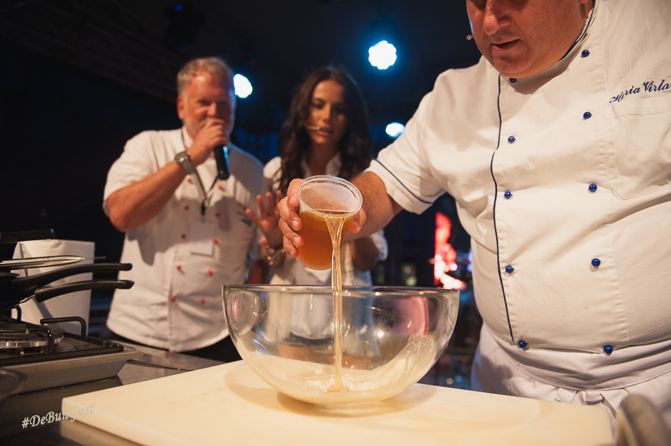 Urmează ca în următoarea oră să mai pregătească un fel de mâncare. Sau două chiar. Dar voi reveni cu fotografii. Între timp, chiar după ce au terminat de gătit a început un concurs în care oameni din public au fost nevoiți să ghicească ingredientele din vreo 18 puse la dispoziție. A câștigat o doamnă care a venit tocmai din Cernavodă ca să fie prezentă la festival. Priviți fotografiile! Aveți grijă dacă sunteți pofticioși.