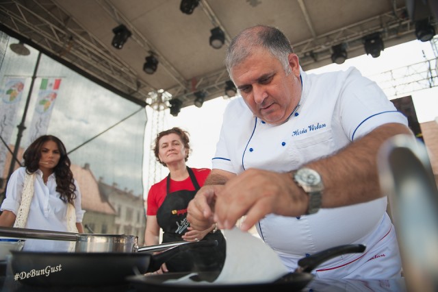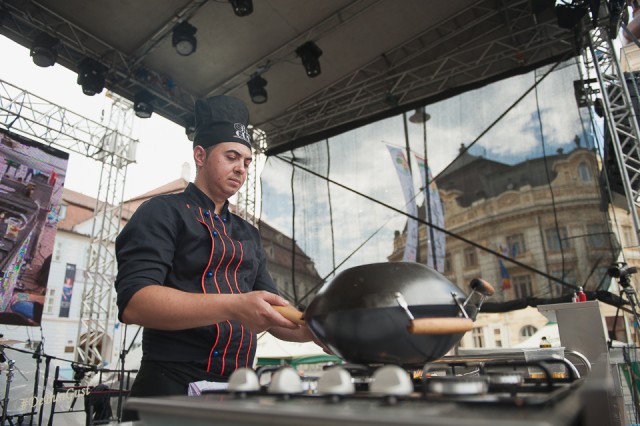 Astăzi va găti pe scena din Piața Mare Horia Vârlan, iar spre seară va reveni Antonio Passarelli care ieri a făcut un show pe cinste. Sunt convins că și astăzi o să avem parte de mâncăruri delicioase preparate ca la carte. Aștept cu drag să fotografiez show-urile culinare de pe scenă (vor fi astăzi demonstrații din bucătăria spaniolă și libaneză). Dar până atunci haideți să vedem ce se întâmplă acum în centrul Sibiului.