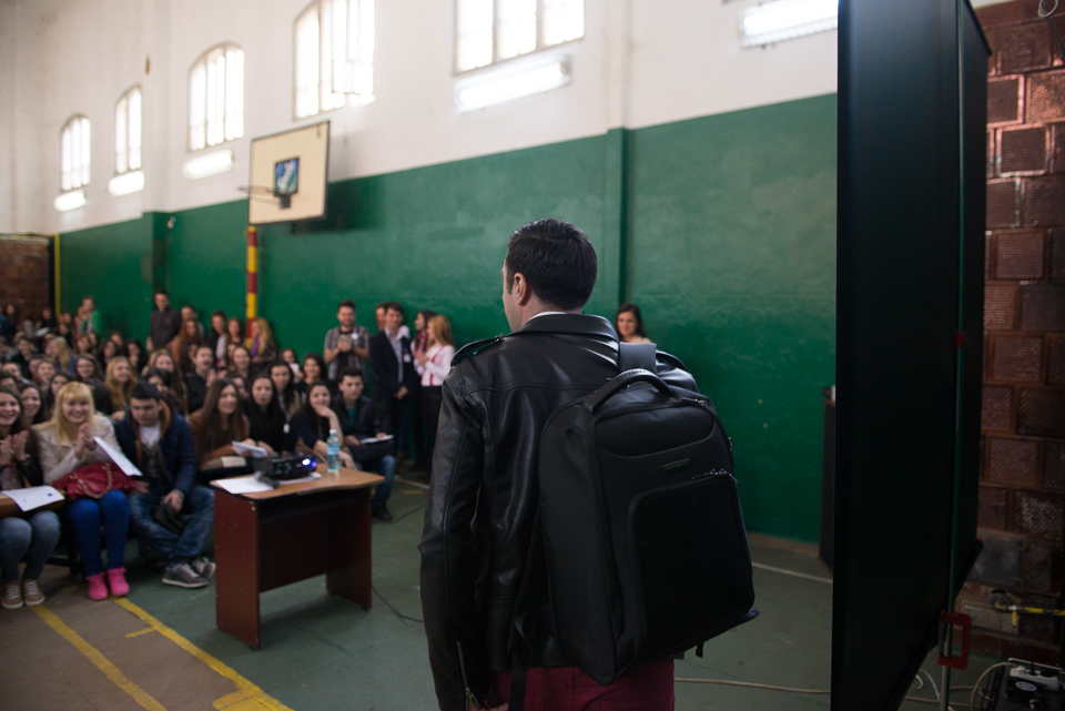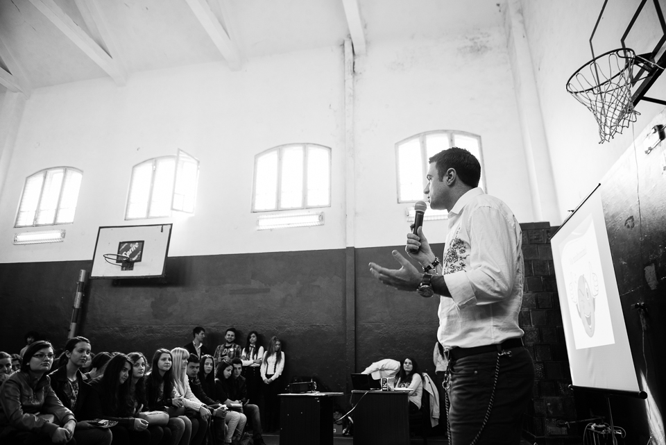 Și acum să revin la traseul nostru. Ajunși în Pitești am căutat rapid liceul, am parcat și am pornit spre sala de sport unde se ținea prezentarea. Aici Cornel le-a vorbit elevilor despre violența în cuplurile de adolescenți ajungând din nou la ideea că oamenii de lângă tine sunt extrem, extrem de important. Ei te pot face să mergi mai departe sau să cedezi. Ei îți pot da putere sau te pot seca de ea. Important e să-i alegi pe cei potriviți.